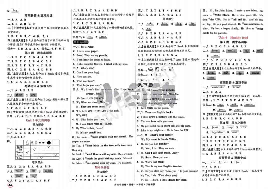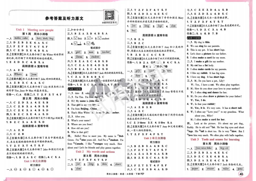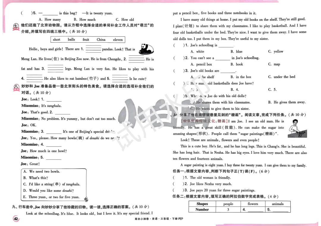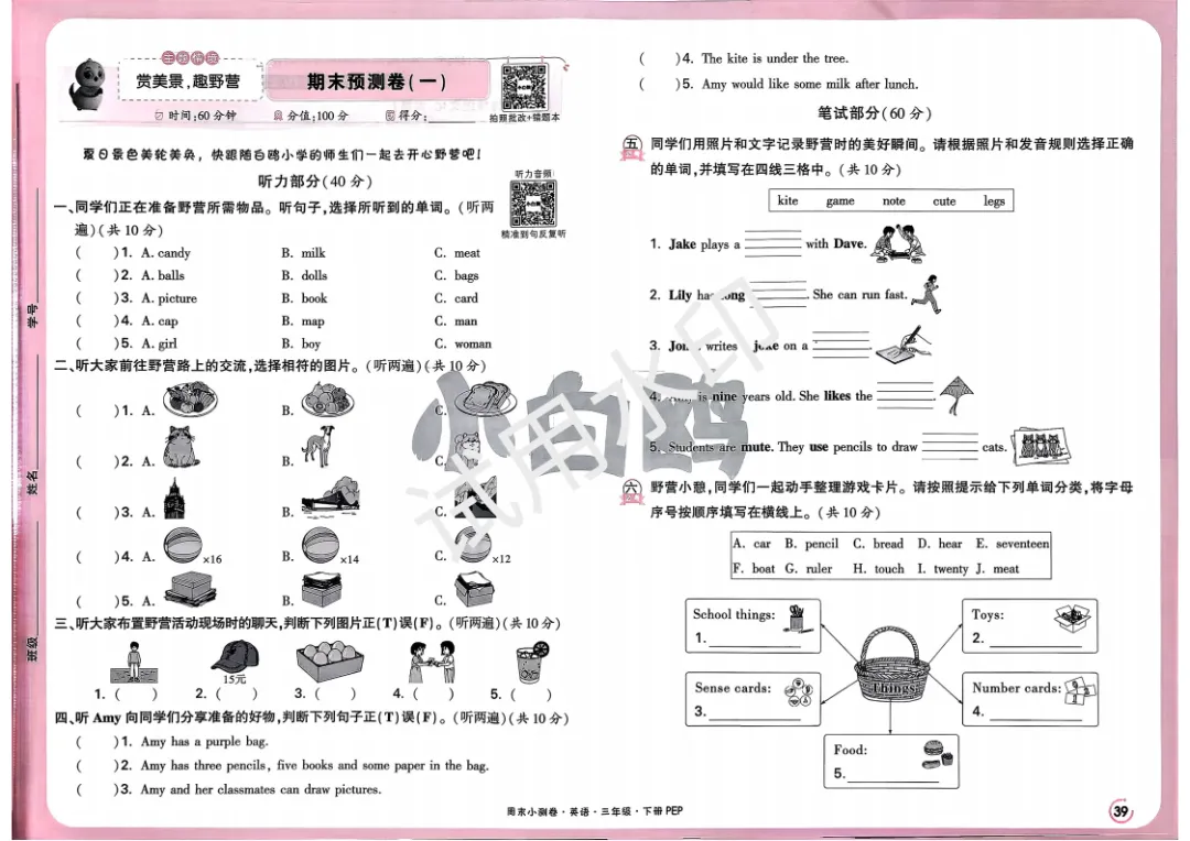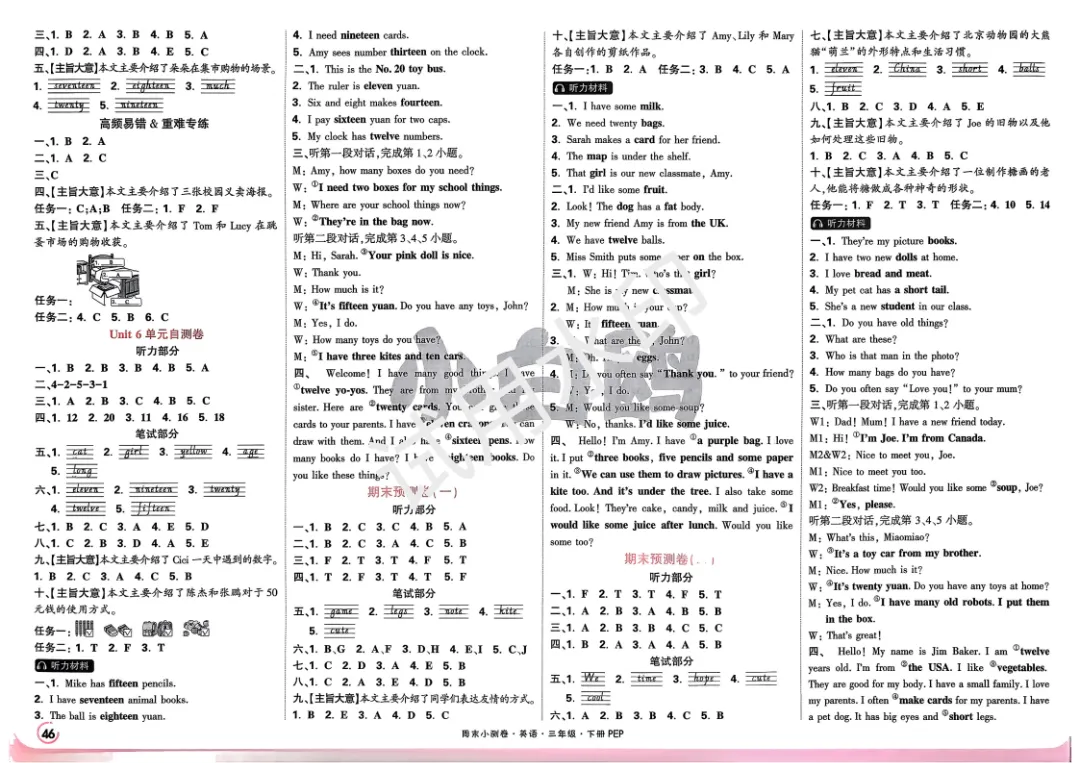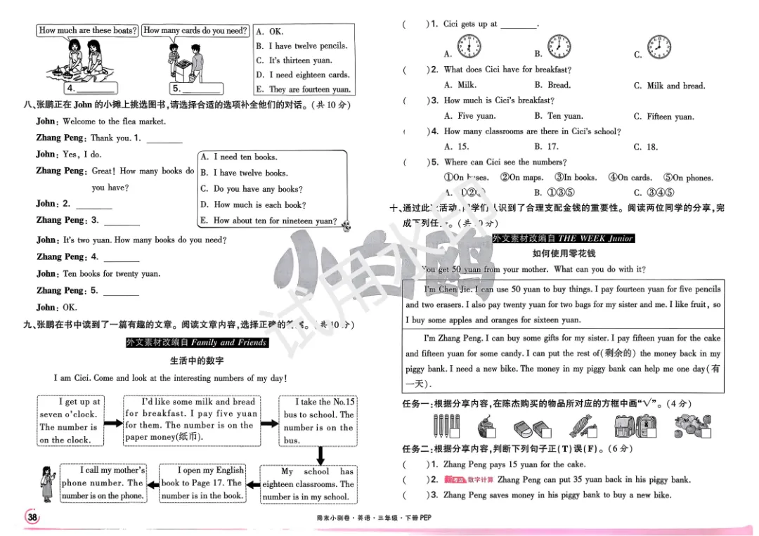 3下英语人教PEP《小白鸥周末小测卷》电子版可打印