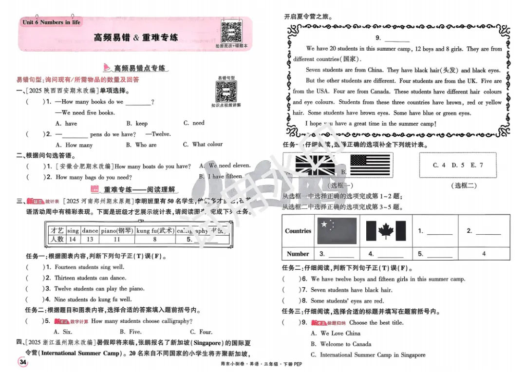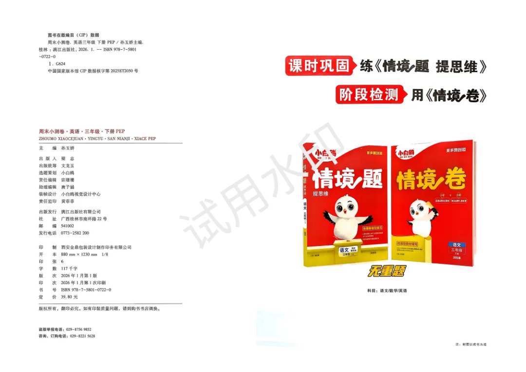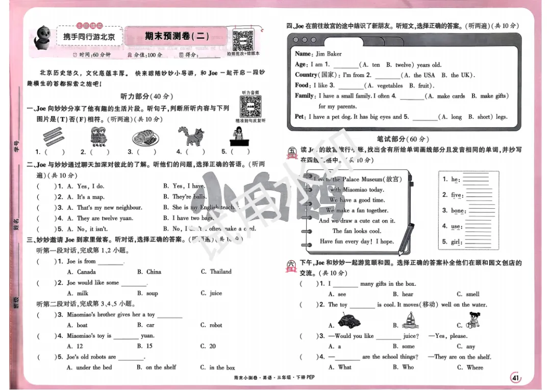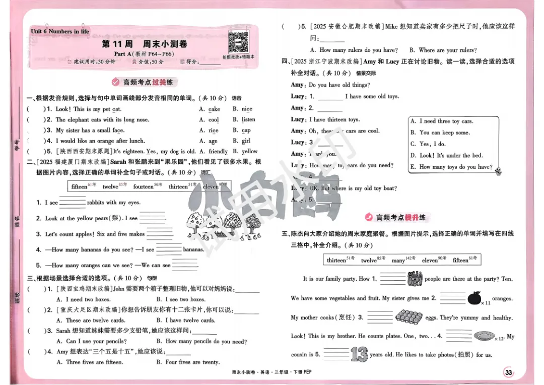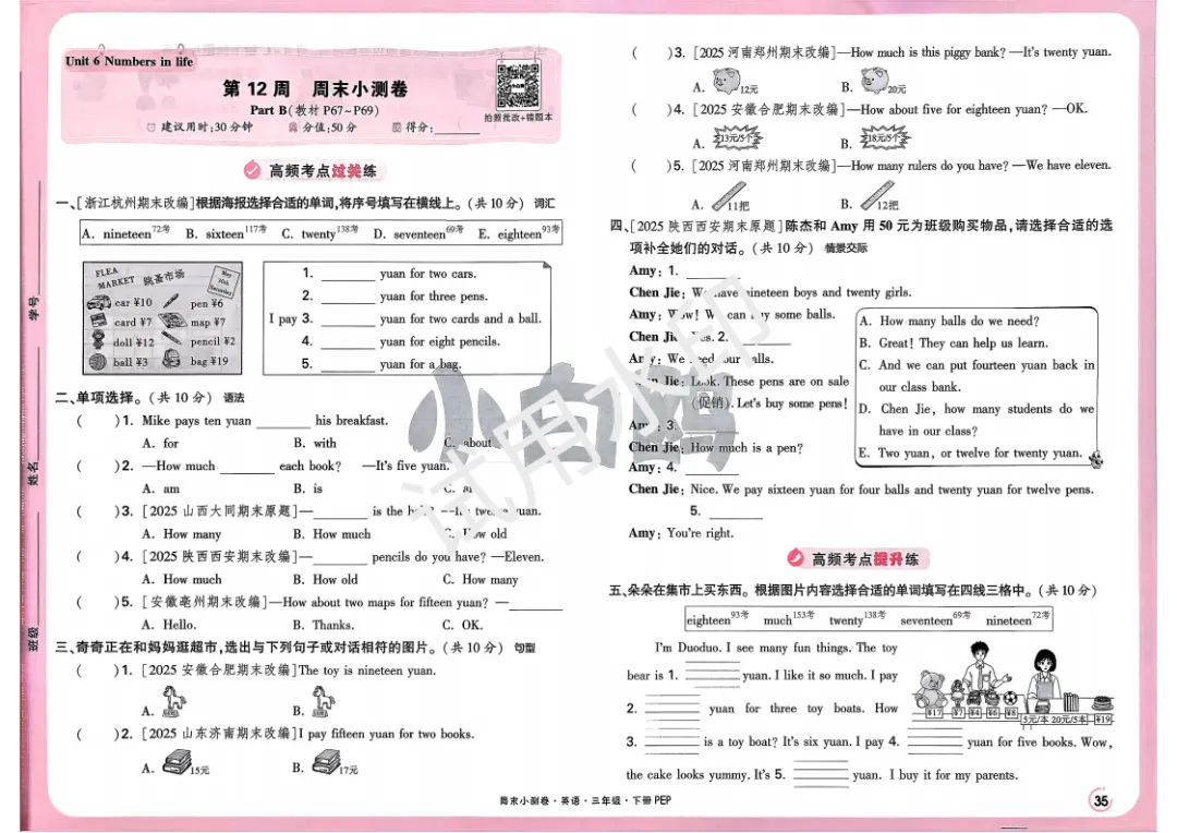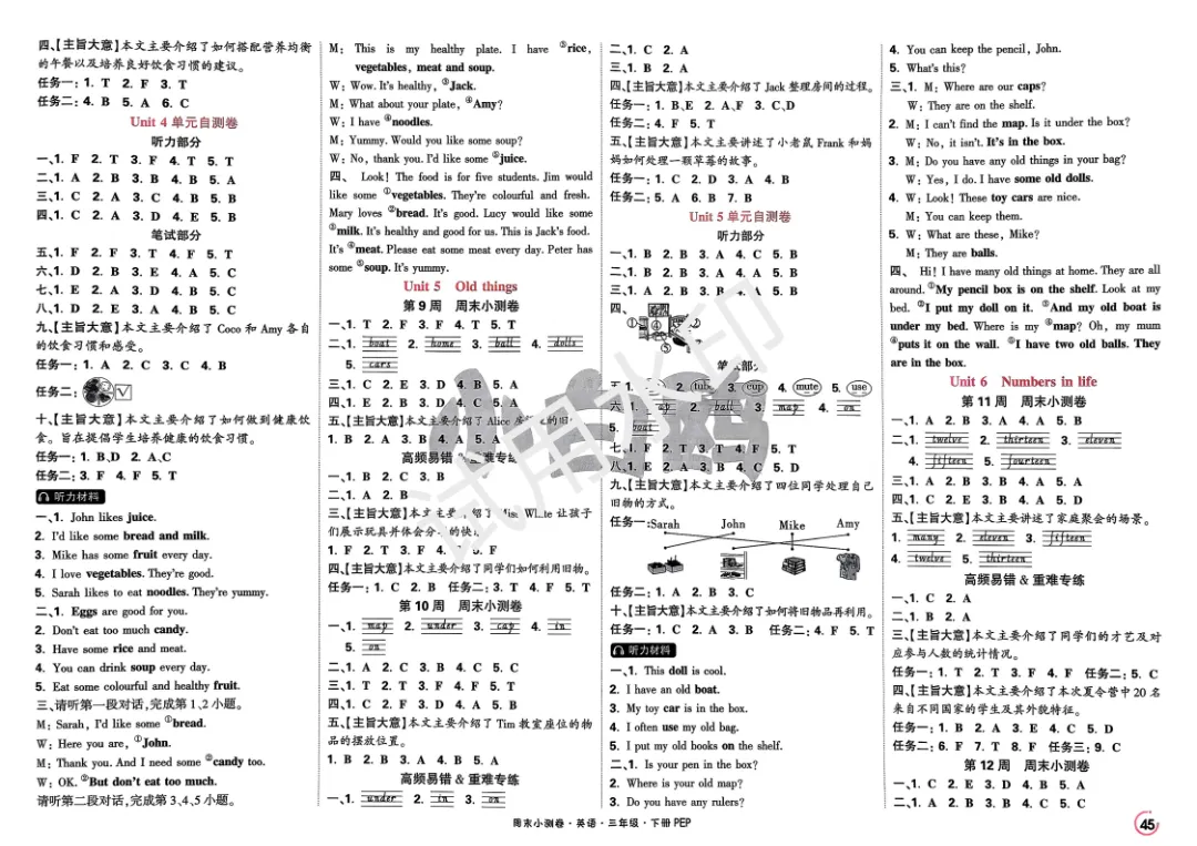 3下英语人教PEP《小白鸥周末小测卷》电子版可打印