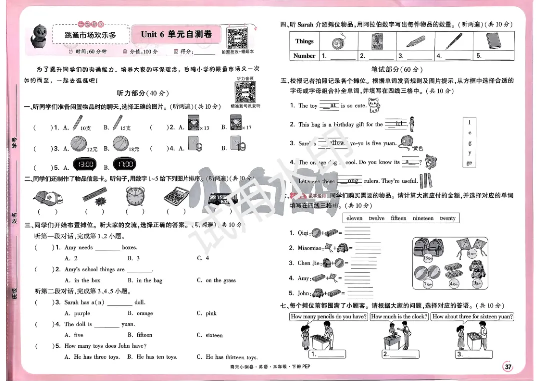 英语周末小测卷是教学的有力辅助工具。它能及时巩固本周所学知识,如单词、句型等,让学生加深记忆。通过测试,可精准反馈学生学习情况,老师能据此调整教学策略。对学生而言,能发现自身薄弱点,有针对性地查漏补缺,提升英语综合能力,还能培养良好学习习惯和应试技巧,为后续学习打下坚实基础。