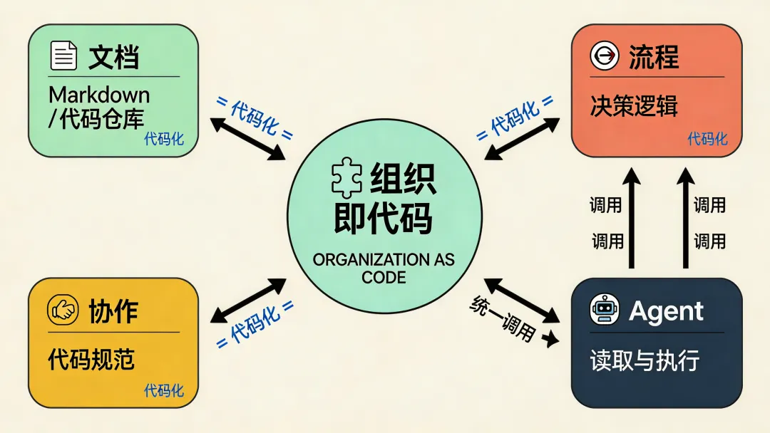 当一个组织把所有的流程、文档、决策逻辑都编码成可以被Agent读取和执行的格式,这个组织就变成了一台可以被Agent操作的机器。