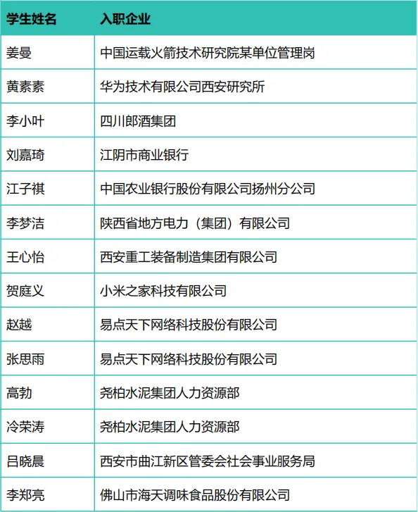 人力资源管理专业就业渠道多元且极具发展潜力,毕业生可在大型央企、省内龙头企业人力资源部,中小型企业人力板块,人力资源服务 / 咨询公司,以及行政事业单位人力管理岗等多领域实现职业发展。以下为部分人力专业毕业生入职企业: