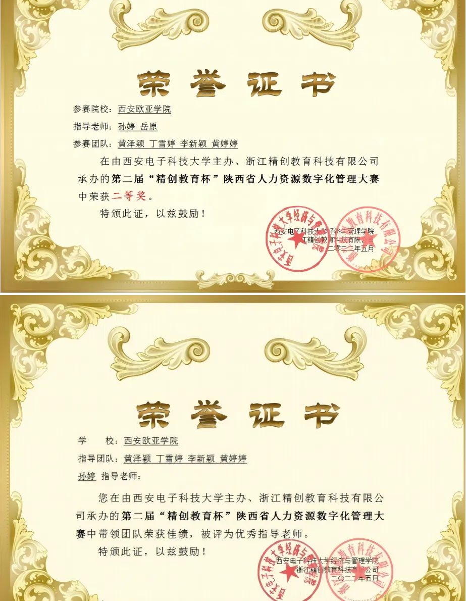 从 “互联网 +” 创新创业大赛的校级突破,到 “三创赛”“全国大学生人力资源知识技能竞赛” 的全国性佳绩,再到陕西省数字化人力资源管理竞赛的省级荣誉,学生们以扎实的专业功底和实践能力,在学术、创新、行业赛事中全面开花。这些竞赛成果不仅是学生个人能力的生动体现,更映射出专业在培养复合型、创新型人才方面的卓越成效,为学生未来职场发展注入强劲动力。