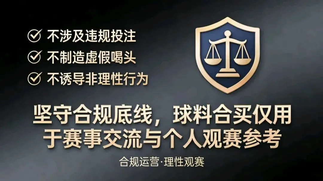 我们始终坚守合规底线与理性原则,明确界定:球料合买仅用于赛事交流、资讯参考、球迷互动,绝不涉及任何投注、代投、非法购彩等违规行为,绝不宣传“内幕”“稳胜”“保本”等虚假误导信息,绝不诱导任何非理性消费与投机行为。一切内容以客观、真实、专业为标准,只为提升观赛体验,只为搭建纯粹的球迷交流平台。