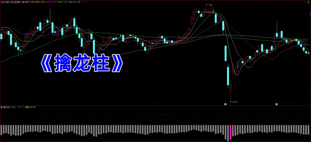 STICKLINE(QLZ78 AND 伏虎<0 AND QLZ5 ,0,降龙,2,0),COLORCC00FF;