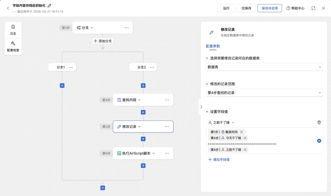 通过自动化流程配合字段内容清空的Airscripr脚本,这样就可以实现定时存档字段内容到新的地方并清空原字段内容啦!
