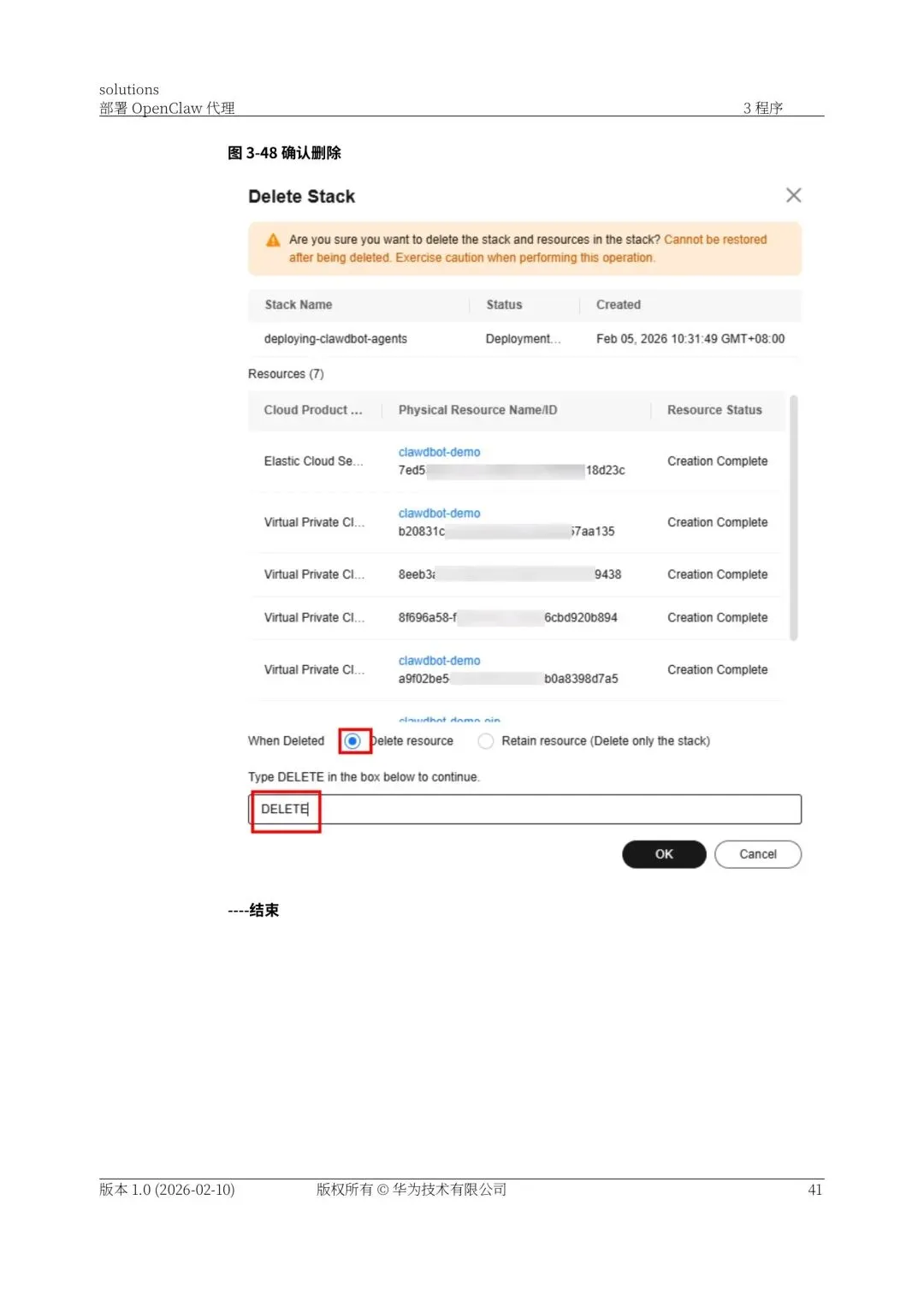 卸载流程也很干净,在控制台删除堆栈就能彻底清理资源,这种全生命周期管理对试错和迭代特别友好。