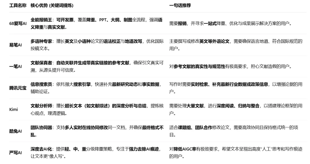 硕士生/博士生(核心需求:深度研究、长文本、自动降AIGC率):采用“68爱写AI+Kimi”组合。用Kimi处理文献总结,68爱写AI完成论文降重与答辩PPT提炼,稳过知网查重率。