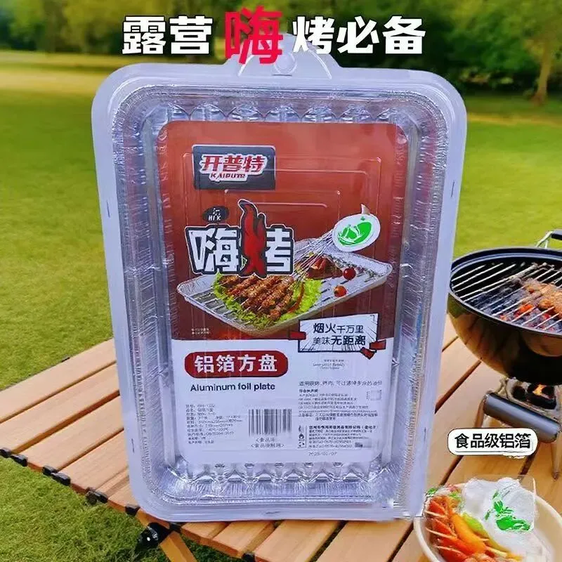 一次性铝箔烤盘/锡纸盘,耐高温不粘铝箔盘,免洗直接用,烤肉/烤蔬菜都方便,户外烧烤清洁零负担。