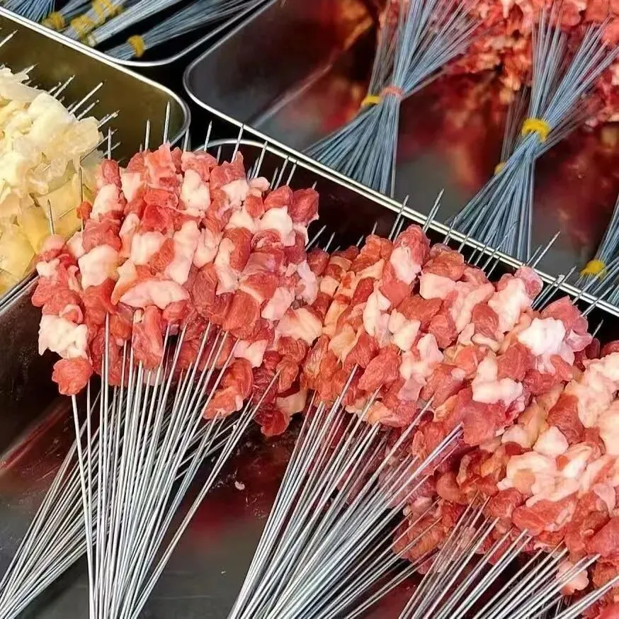烧烤签子(竹签/铁签),光滑无毛刺竹签/耐高温铁签,串肉牢固不易断,久烤不焦,新手也能轻松上手。