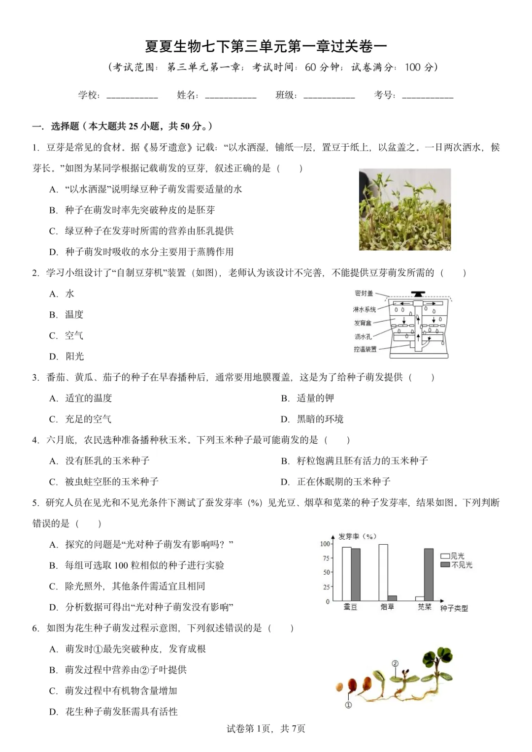 【抢分神器】夏夏生物七下章节过关卷,精准狙击考点,高效检测学习效果,弯道超车逆袭!