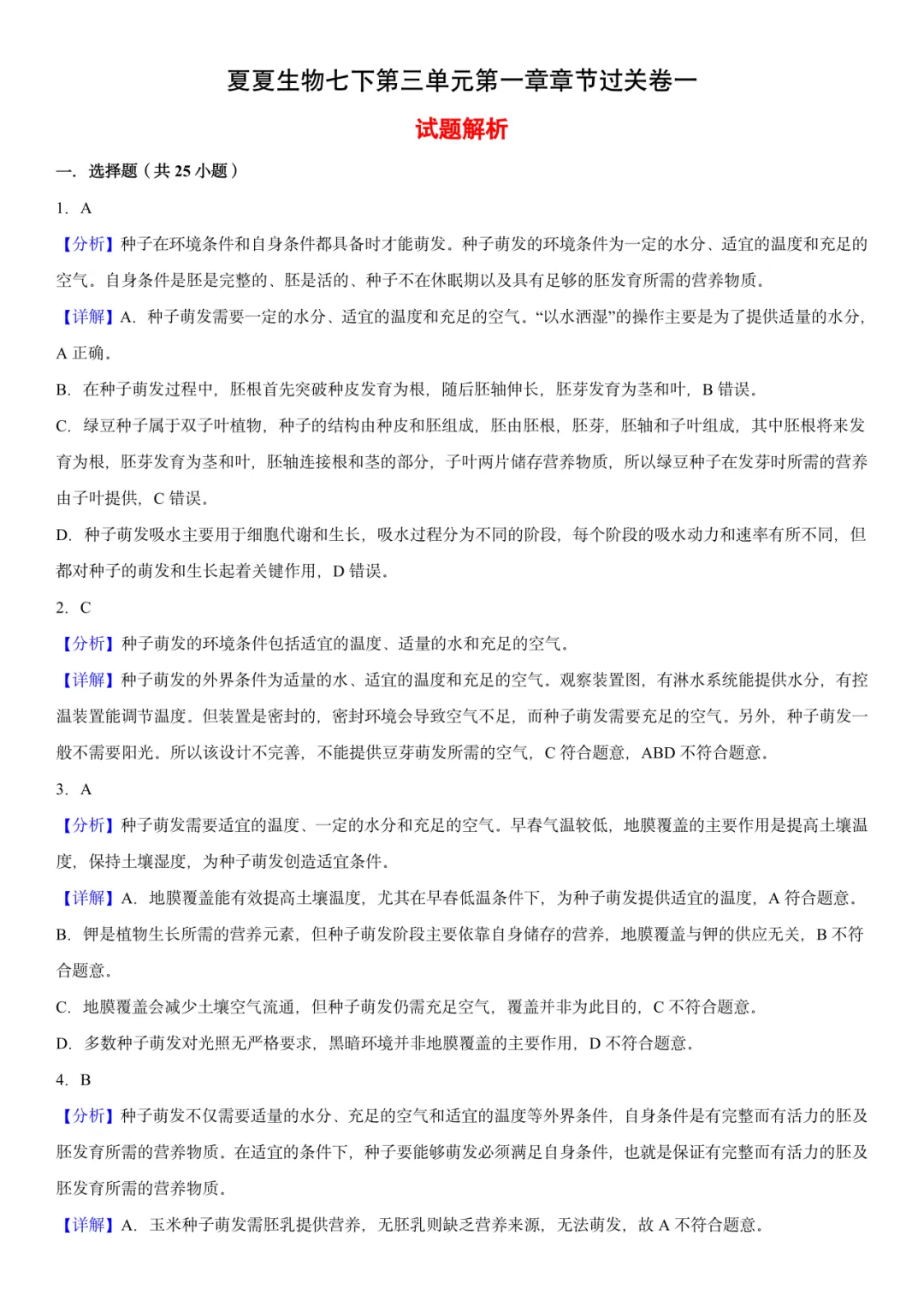 今天更新的是新七下生物第三单元第一章《被子植物的一生》!过关卷聚集高频考点,配答案详解,及时巩固,强化解题能力。视频课不仅配套课件、过关卷、更配套默写小纸条,七下培优高效提分95+!