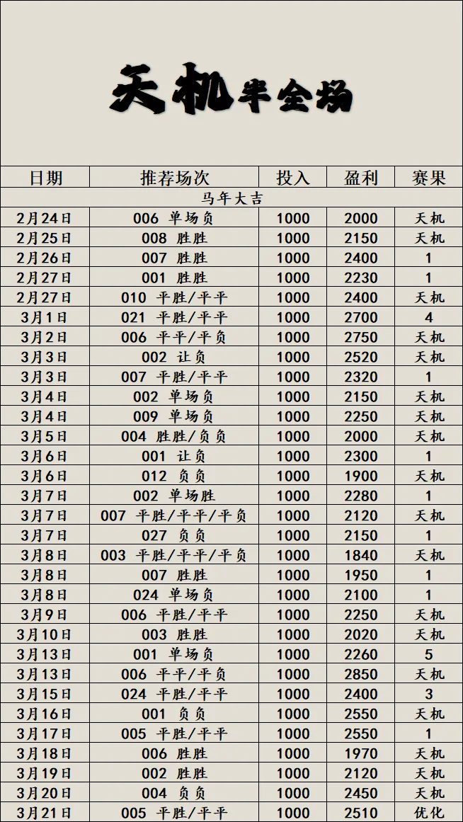 3月21日【今日足球半全场推荐合集】:推荐天机半全场、喜乐半全场、柠檬半全场、单场胜平负!!!