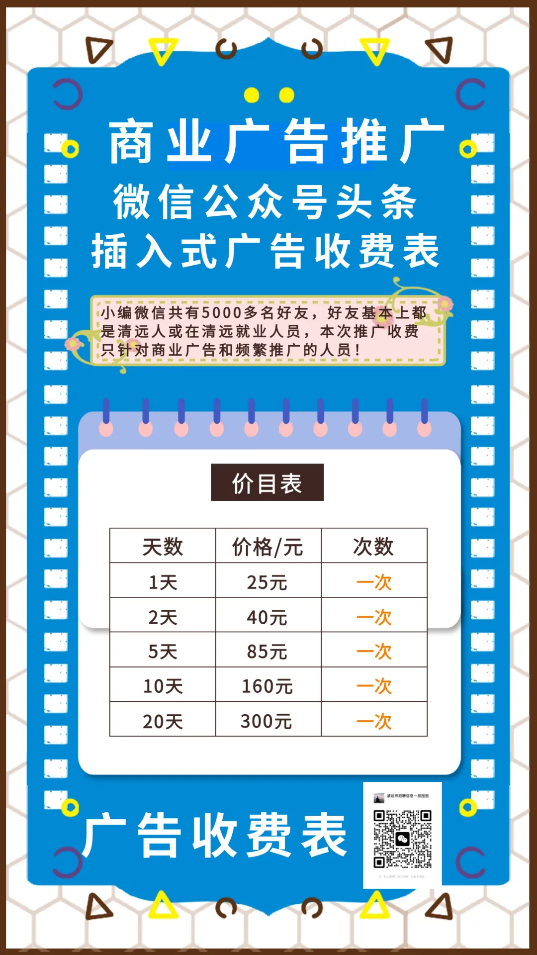 本平台的粉丝基本上都是清远人或者在清远就业人员,朋友圈广告推广: