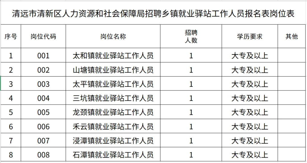 【招聘8人】清远市清新区人力资源和社会保障局公开招聘乡镇就业驿站劳动合同制工作人员公告