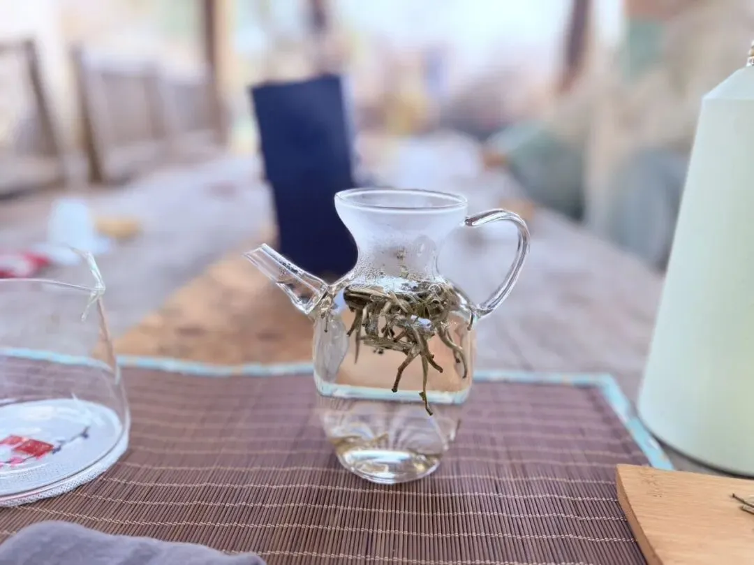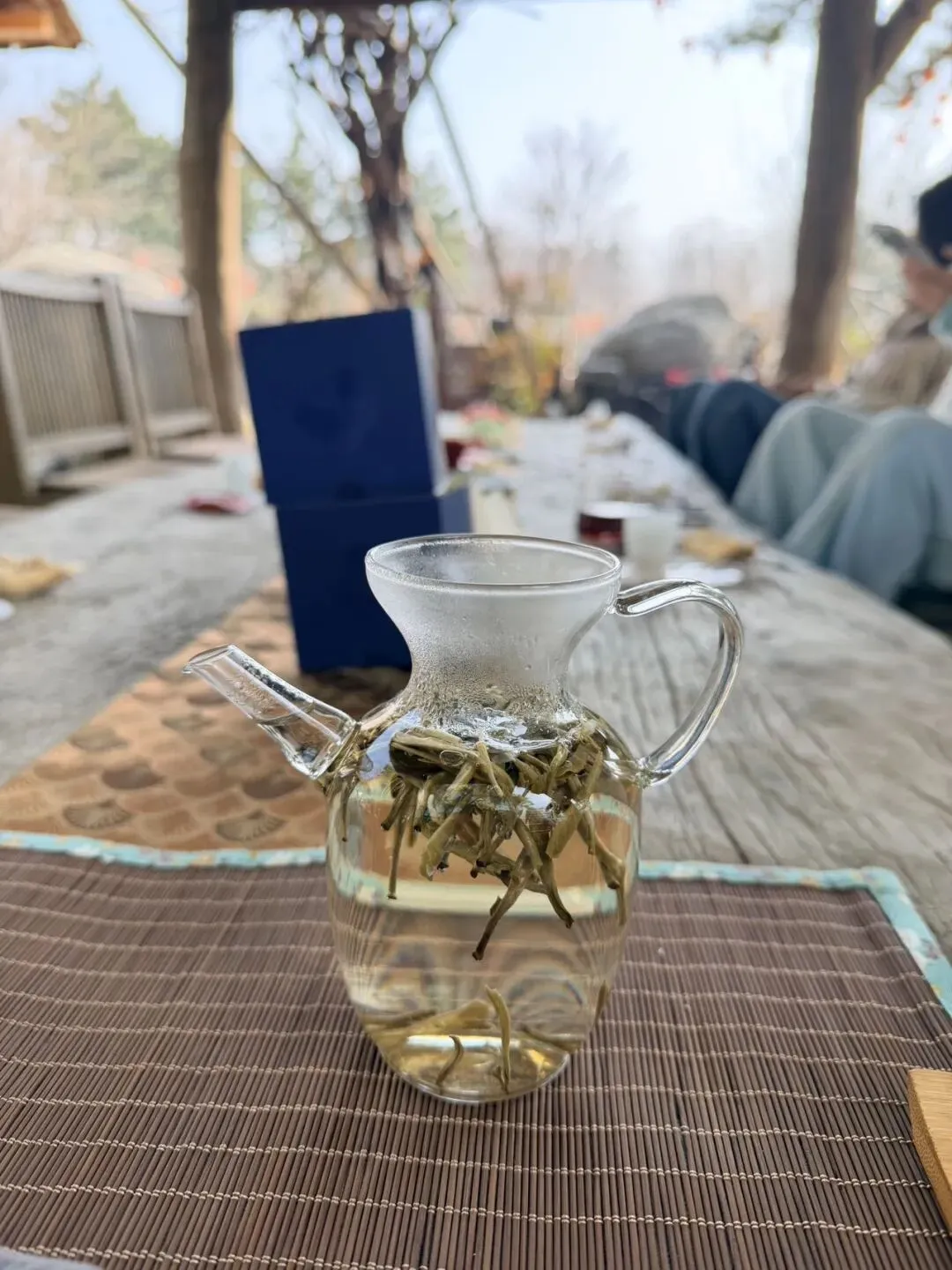 这款茶,既有月光白的清雅醇和,又融入了茉莉花的鲜灵芬芳。在开阔的户外空间中,花香似乎被山风吹散得更远,茶汤入口,甘甜顺滑,仿佛将整个春天的气息都含在了嘴里。