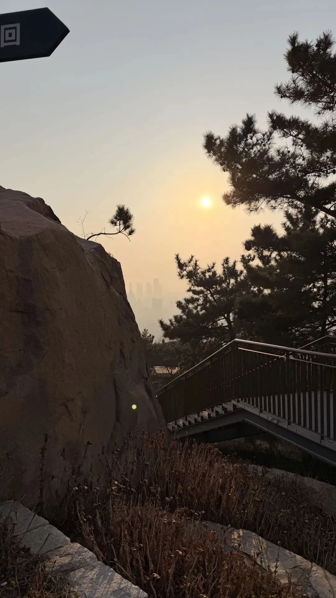 二月二的浮山,春意已在枝头悄然绽放。大家拾级而上,时而驻足赏花,时而拍照留念,时而极目远眺。登至半山腰,恰逢夕阳西下,天边的晚霞与城市的灯火交相辉映,壮美而又温柔。