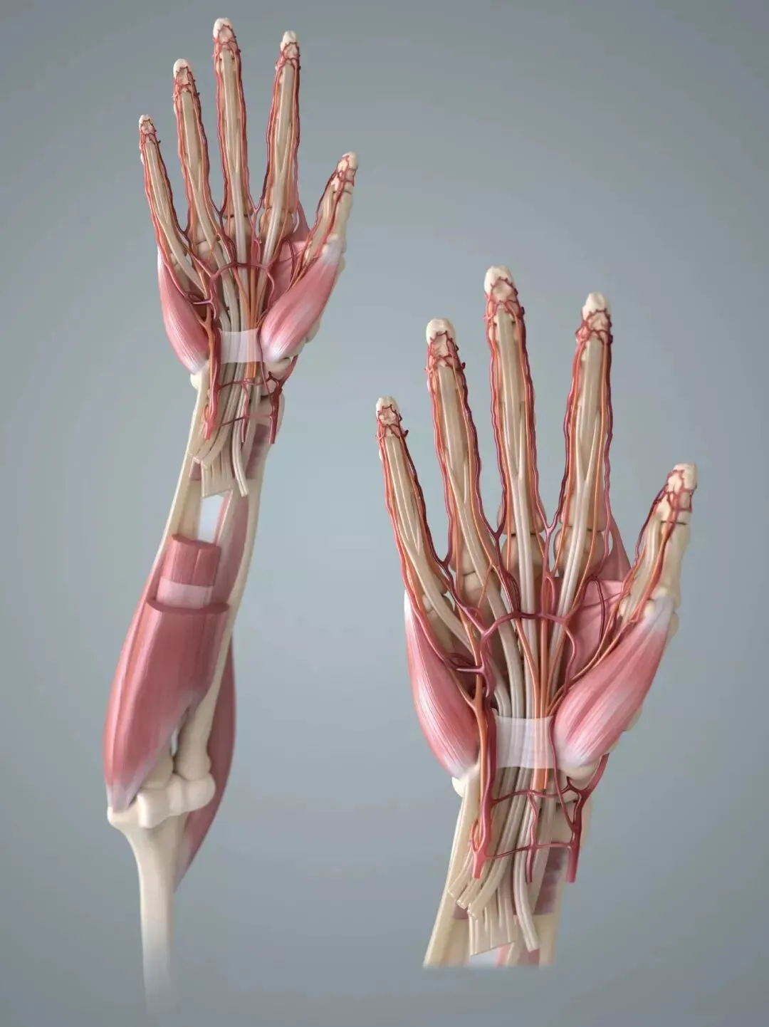 手是一个极为精密的握持装置,富有力量,操作精准。当你想要用力握持一件物品时,强有力的前臂肌肉可以将力量通过肌腱传到手指,肌腱使手指和手腕发生弯曲,握住或抬起物品;而当你想要进行穿针引线、练习书法等一些高精确度的操作时,除了前臂肌肉的力量之外,手指关节和位于肌腱间的小块肌肉可以改变手指的角度,保证手指更加灵活,让手指可以做一些精细的运动。