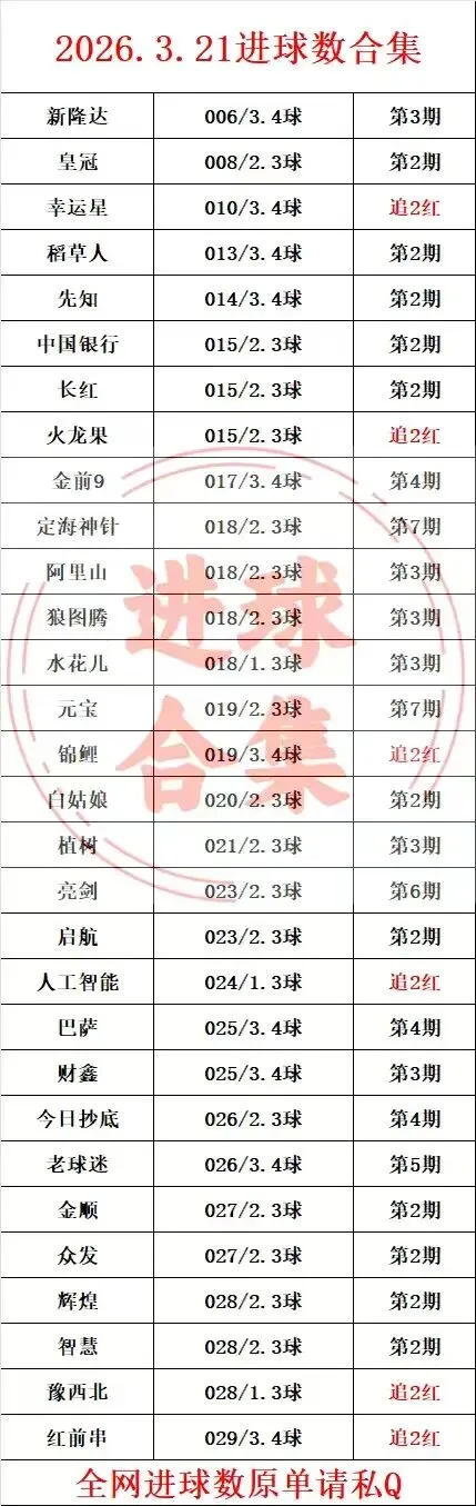 3.21进球数合集+进球数稳胆3.0 感谢您抽出 ·来阅读此文 请点在看+点赞👍,欢迎留言讨论! #足球 #足球业主 #足球系列 #足球推荐 以防失联!兄弟们赶紧关注虎爷备用号,咱不耽误收米路! 更多硬货赛事、精准方向,全在这儿,关注就对了! 是昨日单子就是还未更新,锁定晚上七八点更改,公众号更改次数有限,添加助理看单更及时 🔥 END 创作分享不易,请各位同仁高抬贵手 祝各位观众老爷一路长红 免责说明 本号所有内容均为比赛信息的整理和前瞻,仅供大家了解球队情况,并非比赛预测,拒绝用于任何非法投注行为。本号严格遵守各项国家法律法规,也请大家绿色看球,享受健康生活