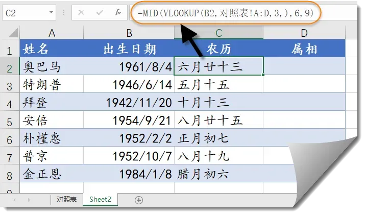 =MID(VLOOKUP(B2,对照表!A:D,3,),6,9)
