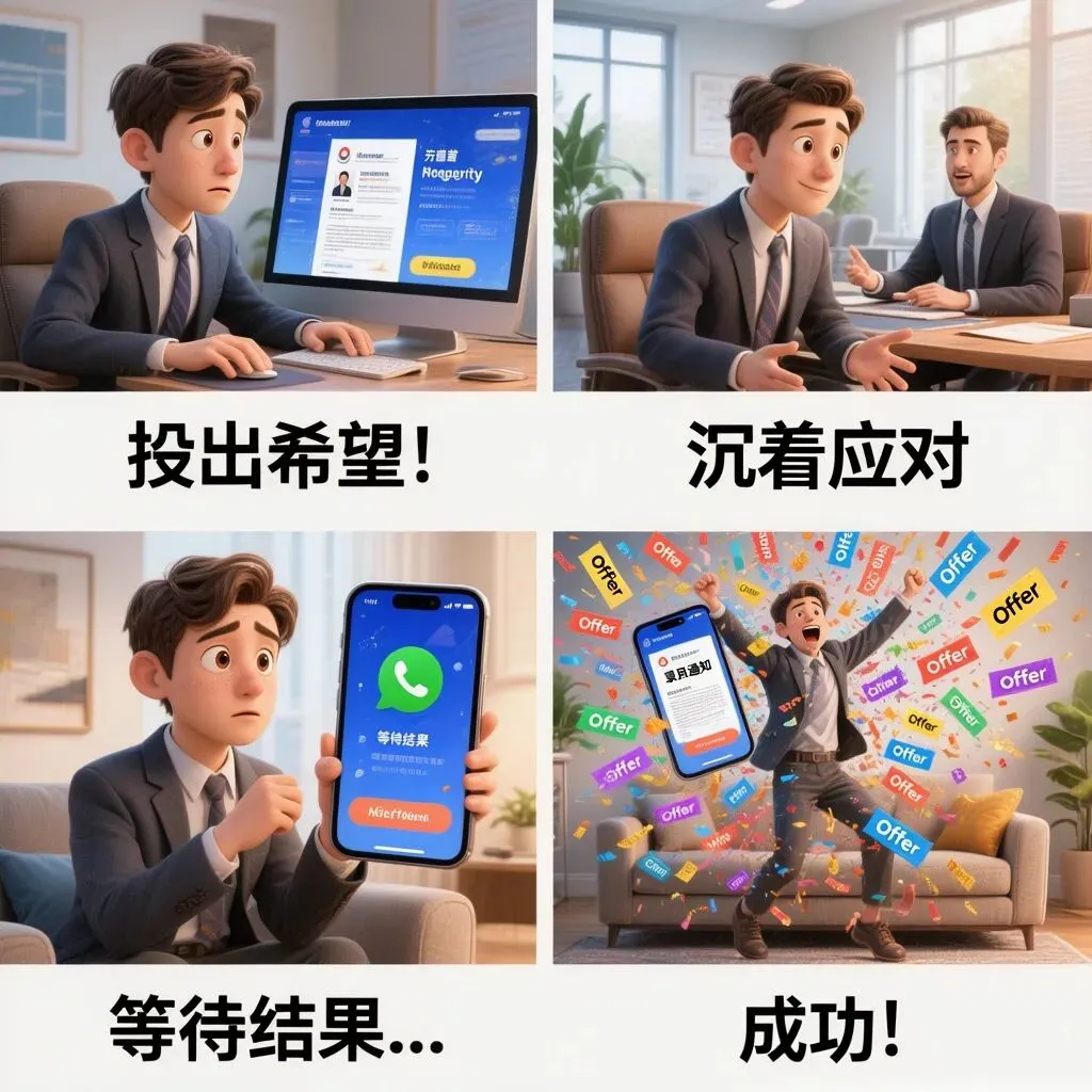 从“发送”到“成功”:一位求职者的四格漫画