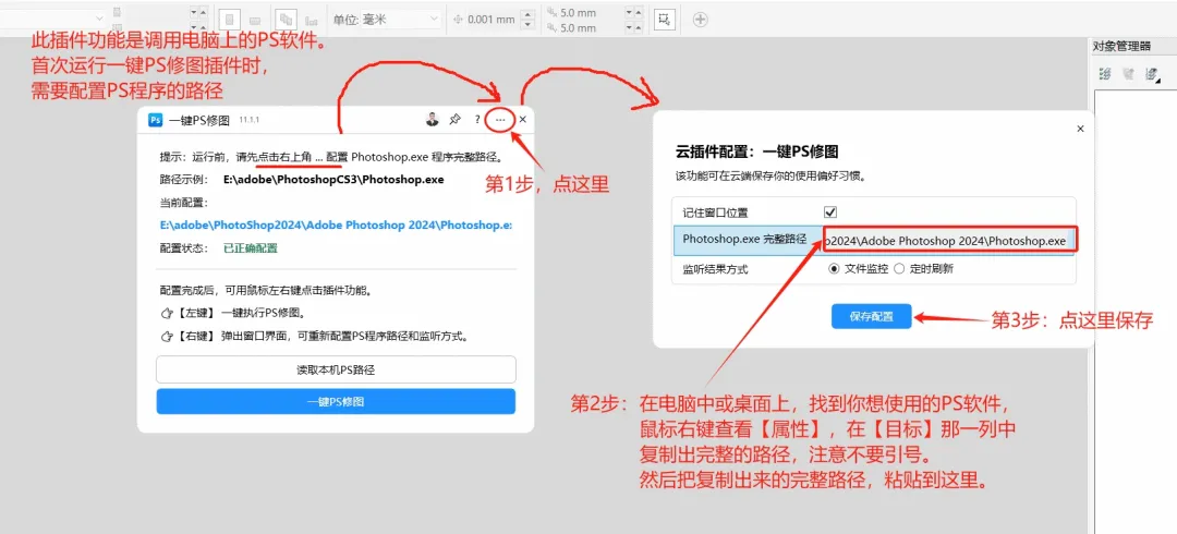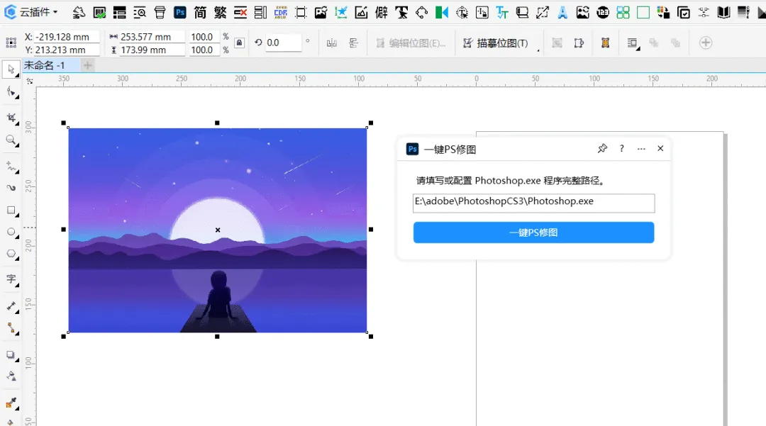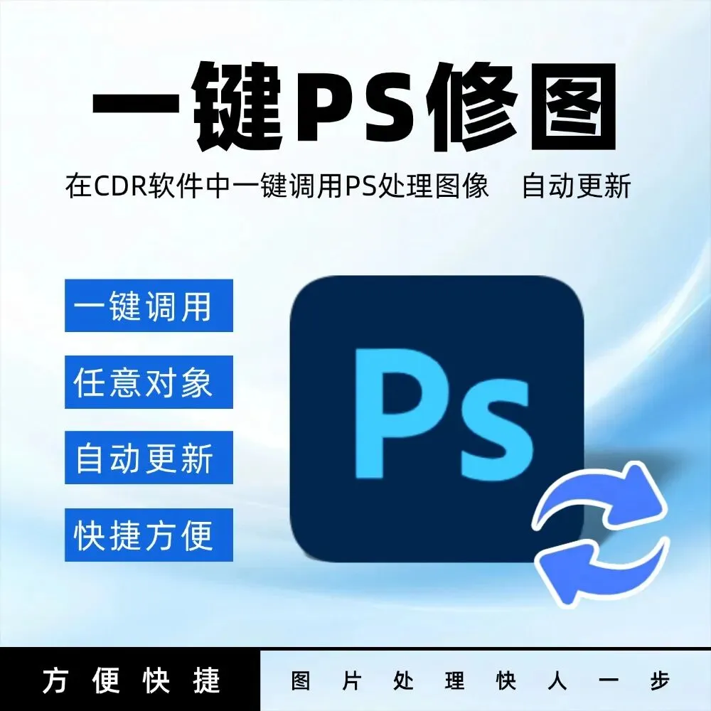 功能简介:该插件可实现将选定的图像一键调用PhotoShop进行编辑,并可以在CDR中自动更新。