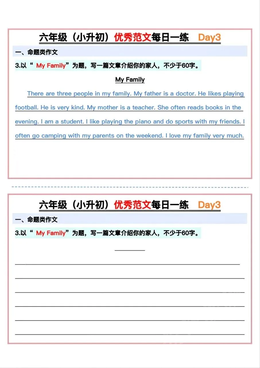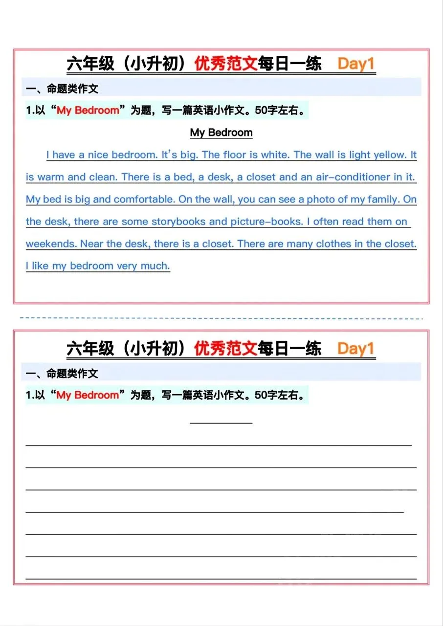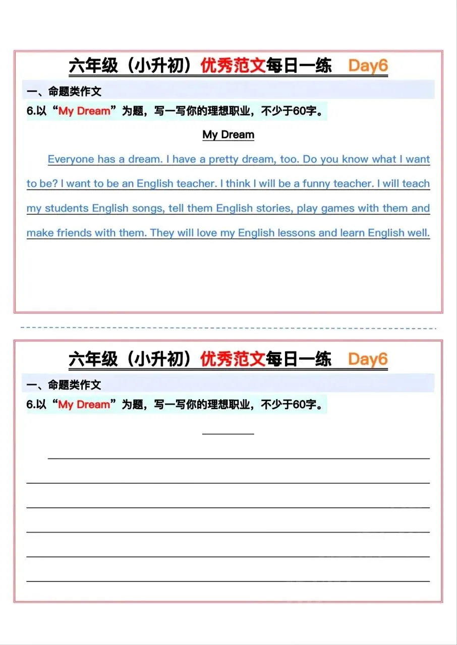 六年级(小升初)英语优秀范文每日一练电子版免费领取