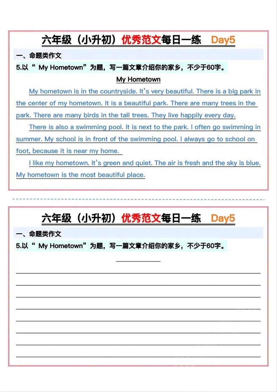 六年级(小升初)优秀范文每日一练电子版免费下载!