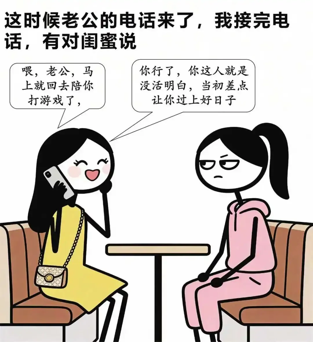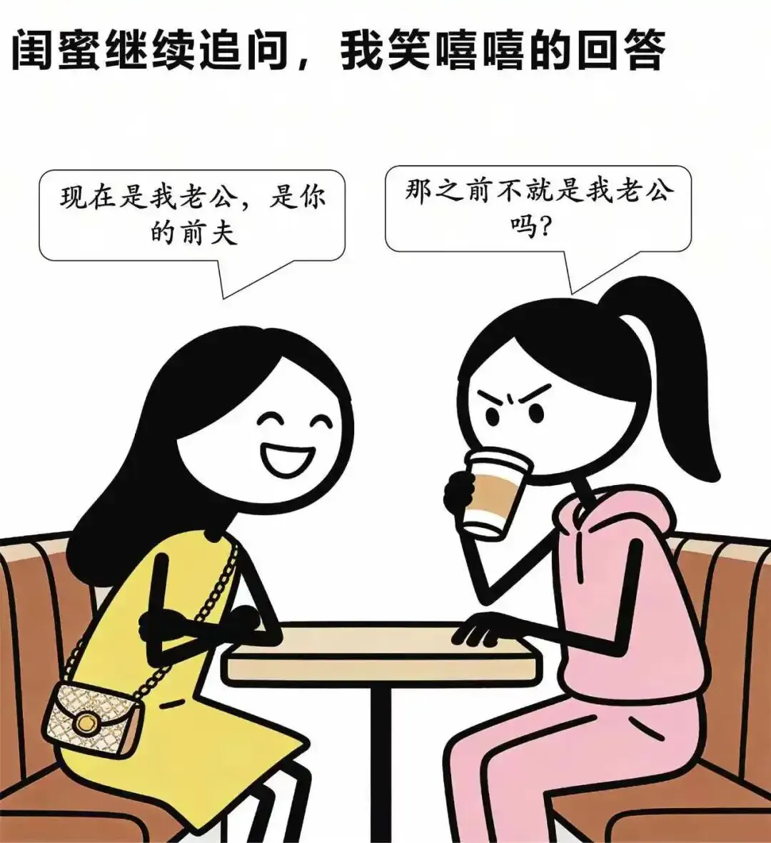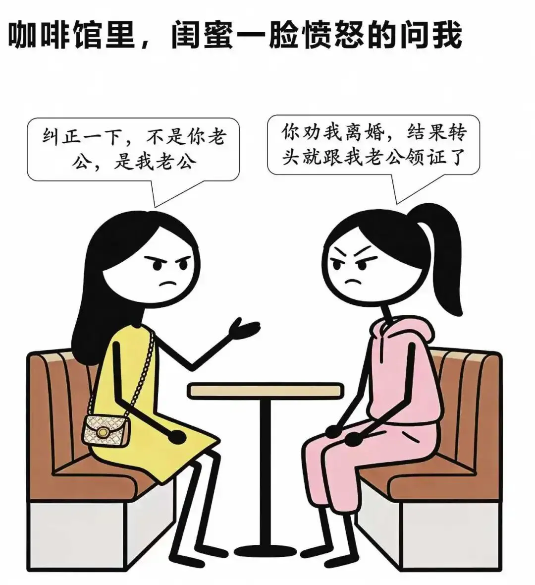 趣味漫画:咖啡馆里,闺蜜:你劝我离婚,结果转头就跟我老公领证了.我:纠正一下,不是你老公,是我老公…