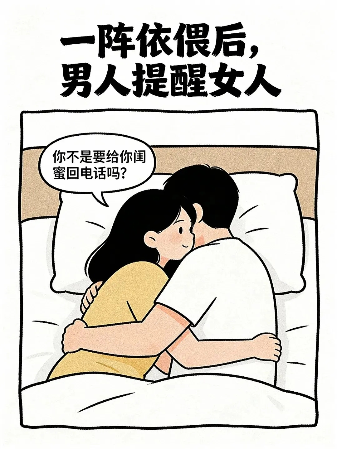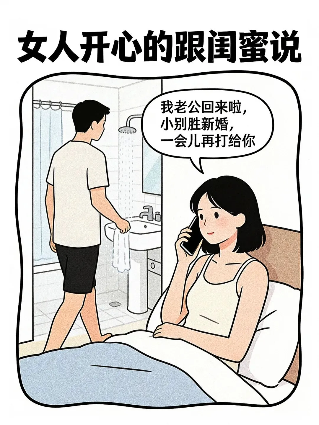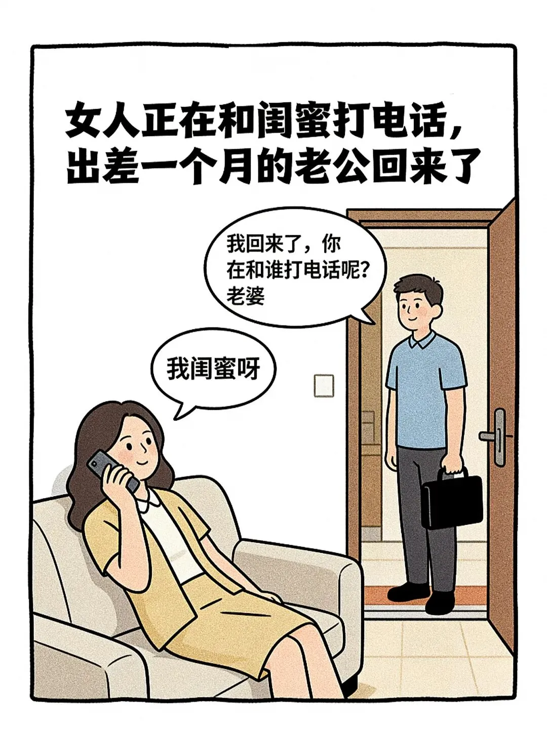 逗笑漫画:老婆给她闺蜜打电话说:老公回来了!晚点打给你!一阵温馨依偎后,老公:你不是要打给你闺蜜吗?老婆:这么快打你不嫌丢人吗