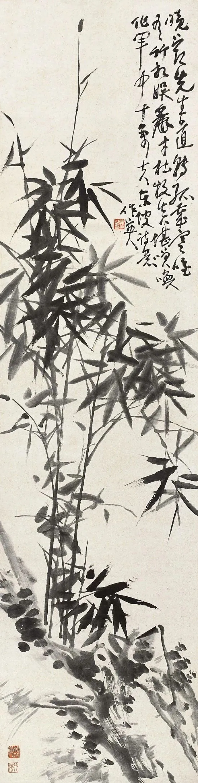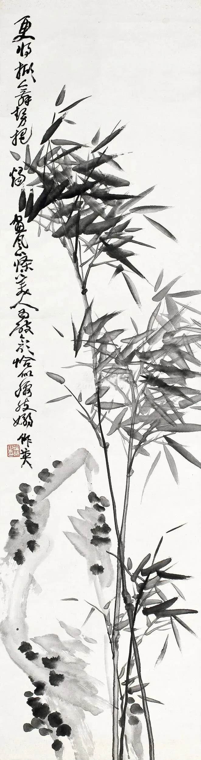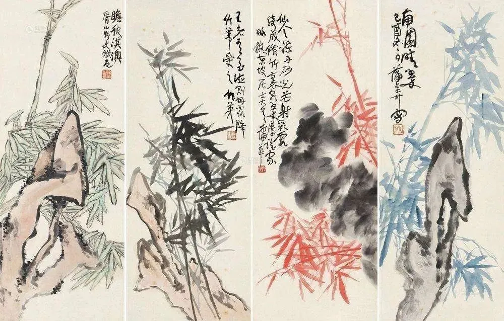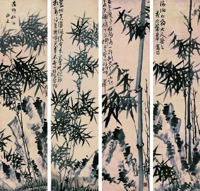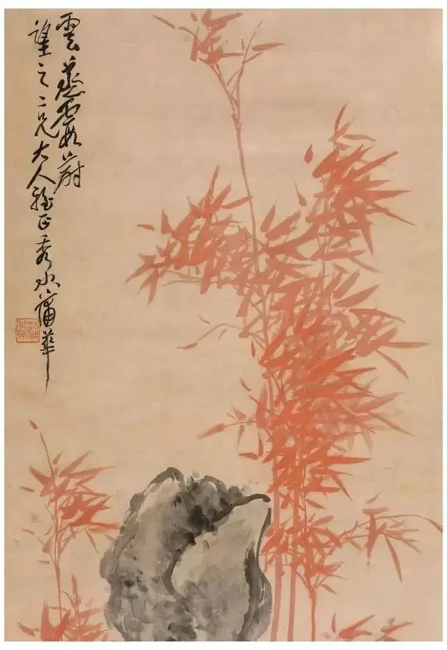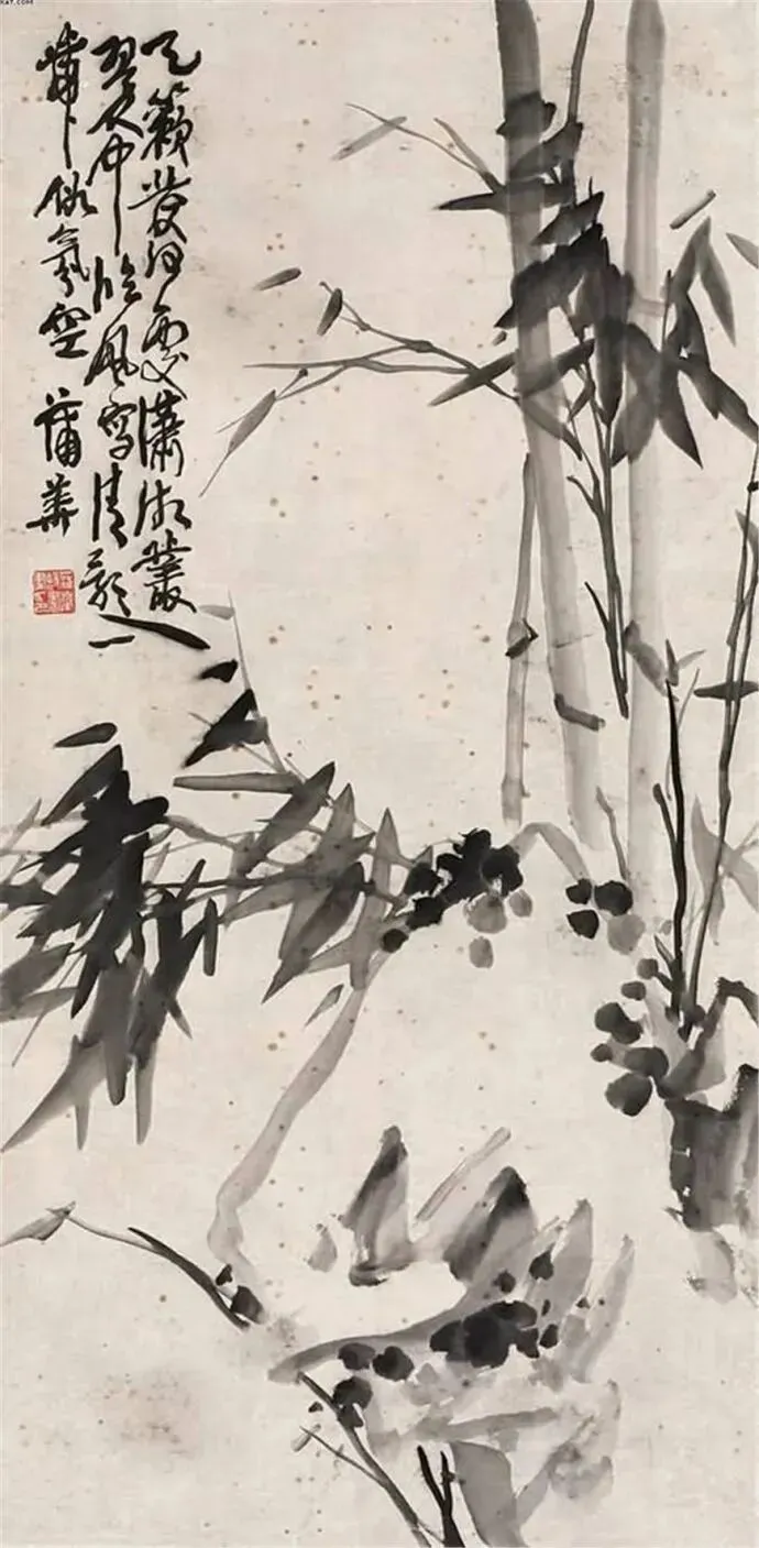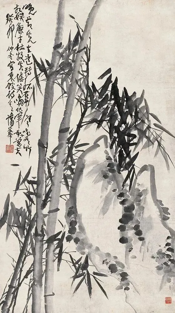 蒲华尊重传统,又不拘泥于传统,而是自创新格,以书入画,酣畅恣肆,纵横潇洒。蒲华画花卉,也画山水,尤其擅长画竹。吴昌硕在《芙蓉庵燹余草序》中写道:“尝于夏月间,衣粗葛,槖残笔三两枝诣缶庐。汗背如雨,喘息未定,即搦管写竹石,墨沉淋漓,竹叶职掌,萧萧飒飒,如疾风振林,听之有声,思之成咏。”蒲华赋予竹以生命,观蒲竹让人产生无限的想象。