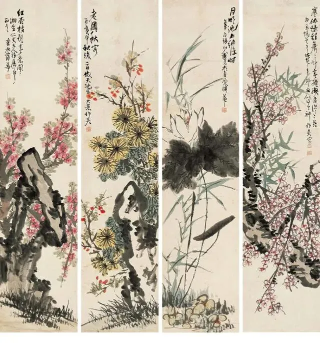 中年出游后,蒲华转益多师,博采众家之长。朱瑶春说他:“近取赵之谦、吴让之、傅啸声、姚大梅、陈允升,而后上追青藤(徐渭)、八大(山人),特别是在徐渭的画风里,蒲华找到了寄托情感的凭借。”