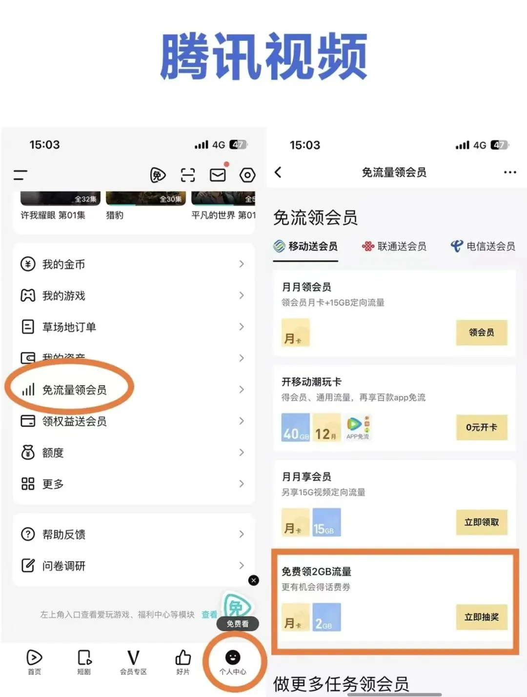 ✅ 合作平台挨个领:QQ音乐、爱奇艺、咸鱼、网易uu…每月各领2GB,加起来十几G。