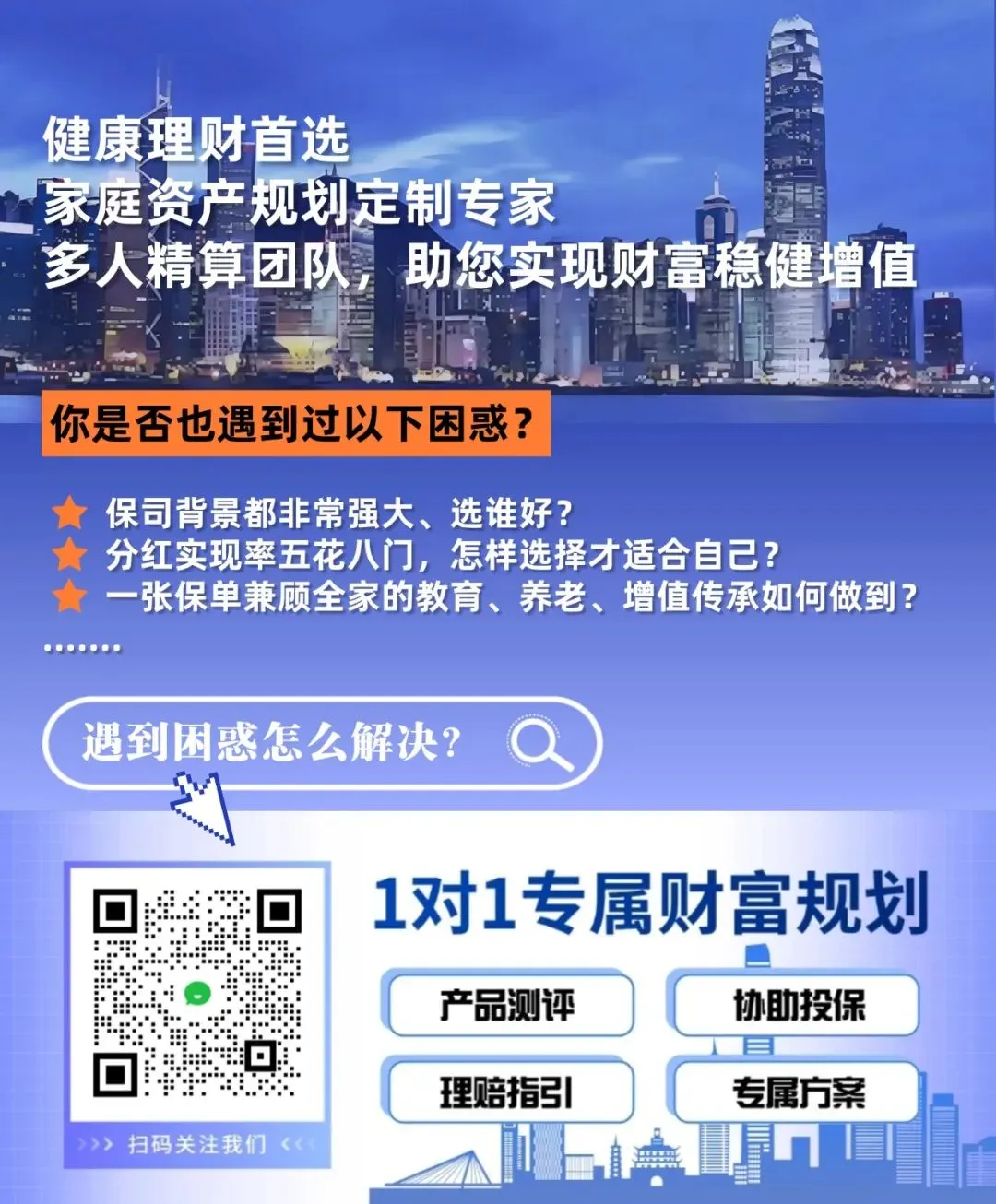 扫描文末二维码,可以免费领取《香港储蓄险对比》一整套+1v1资深精算师财富规划咨询!