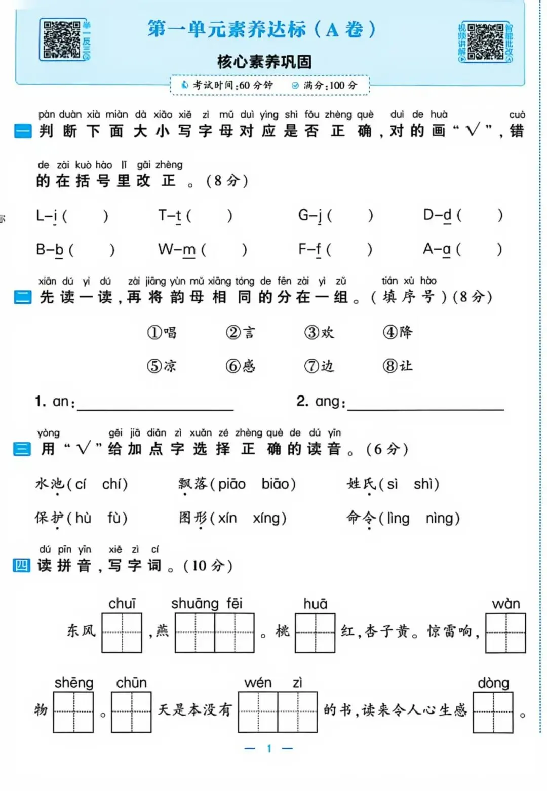 一年级语文下册第一单元练习(2套,可保存打印) 点击蓝字 关注我 大家好,我是素素老师~ 温故而知新,及时巩固很重要。分享两套一年级语文下册第一单元练习,给有需要的朋友参考: 我会持续分享更多,记得关注、点赞或分享❤️哦~~ 点个赞👍🏻鼓励一下呗! END