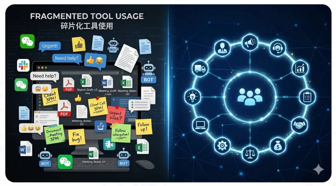 我们相信,企业要真正拥有AI能力,不能只靠多装几个工具、多存几套提示词、多开几个聊天窗口。