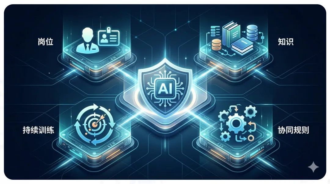 也就是说,AI不应该只是一个“随时可以问两句”的助手,而应该被重新设计为:有岗位定位、有职责边界、有应用场景、有协同关系、有企业知识、有持续训练能力。