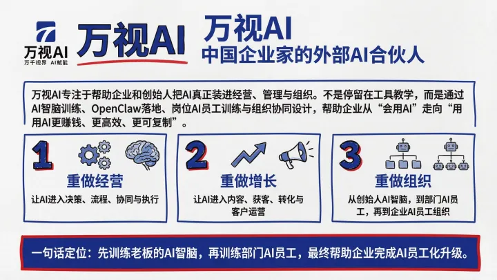 一句话说:万视AI做的,不是让企业“试用AI”,而是帮助企业“拥有AI员工系统”。