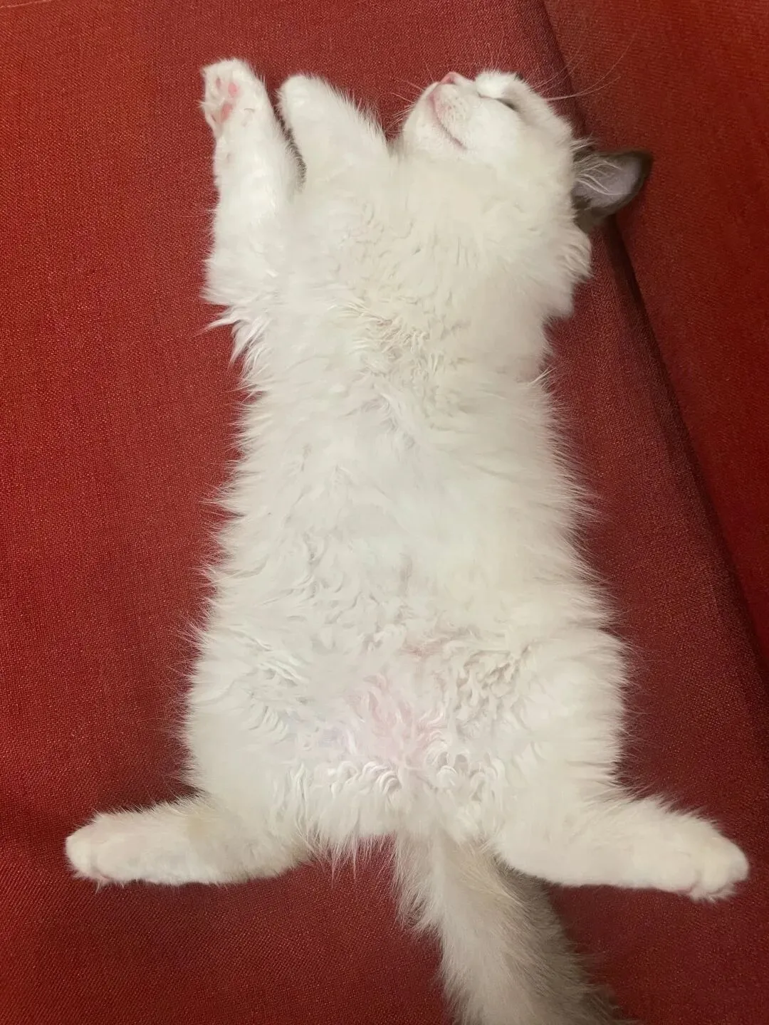 猫的肚皮是全身最脆弱的部位,里面有重要器官。 野外生存的猫睡觉一定是蜷起来护住肚子。愿意在你面前把最要命的地方亮出来,说明它心里清楚:这个家是绝对安全的,身边这个人不会伤害它。