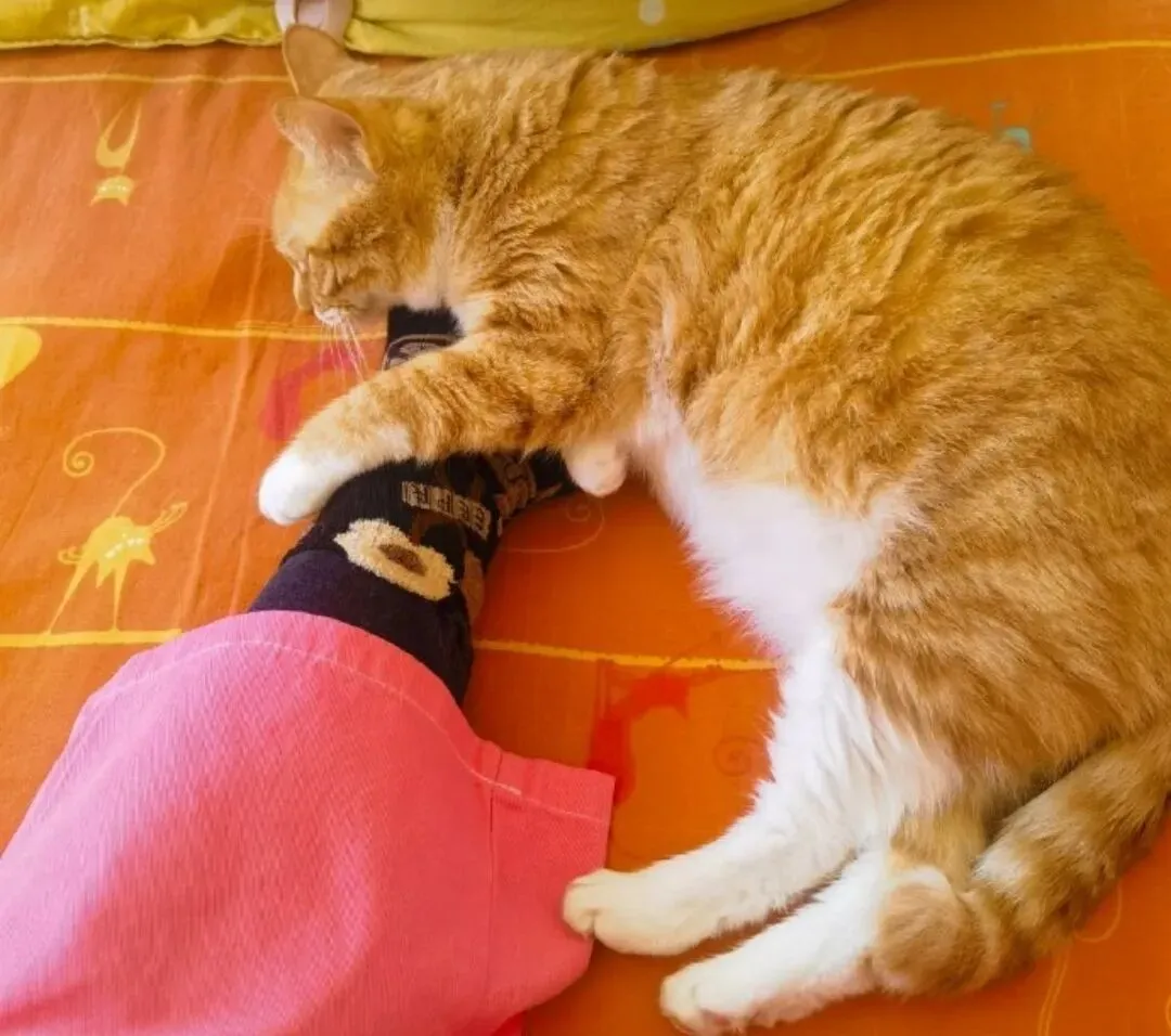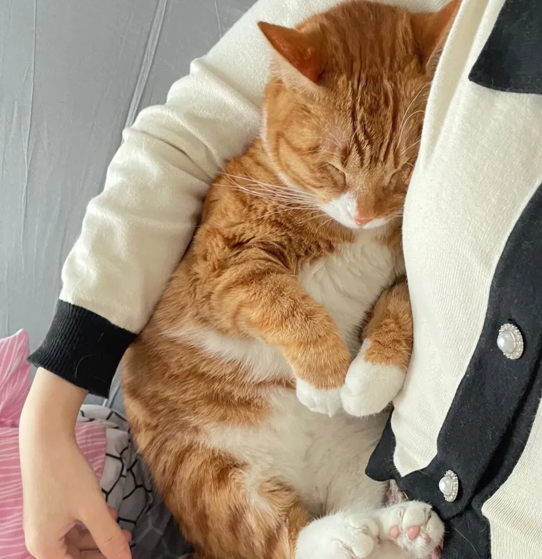 猫的爪子是它最直接的安全感来源。 搭在你身上,等于给自己上了个“安全锁”——你一动它就能立刻知道,同时也能确认你还在身边。这种“保持连接”的睡法,是动物之间表达亲密最原始的方式。