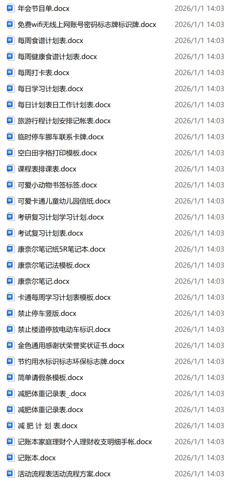 2026新增100款《A4纸打印模板》