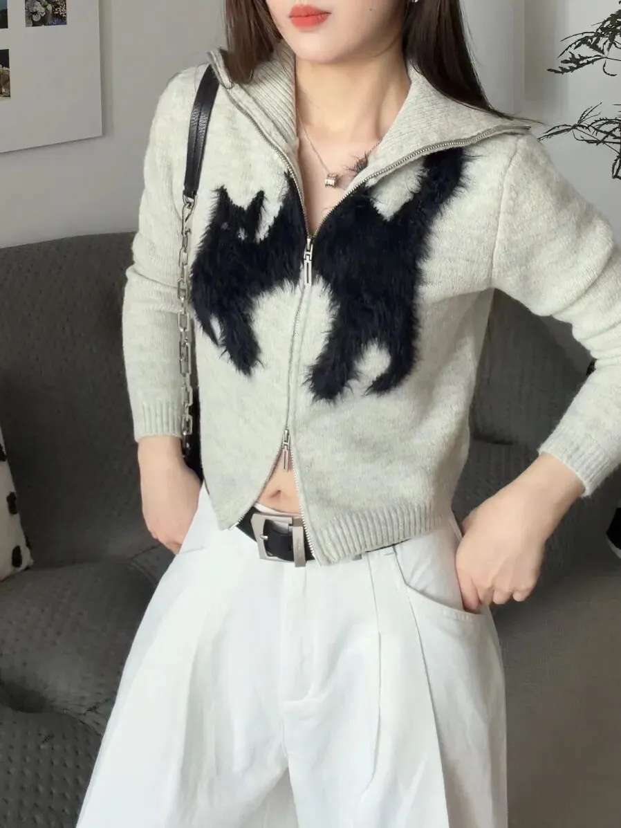 黑色毛茸茸的部分是做了仿马海毛的,所以它的材质会让小猫看起来更加有炸毛的感觉。它算是比较偏毛衣一点的厚度,织法也是比较密实一点的。