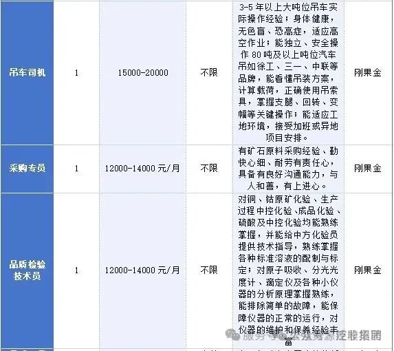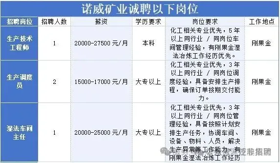 一、诺威矿业刚果(金)资源开发有限责任公司诚聘以下岗位