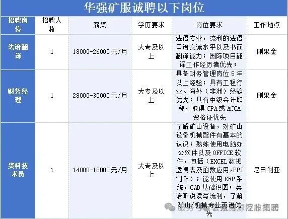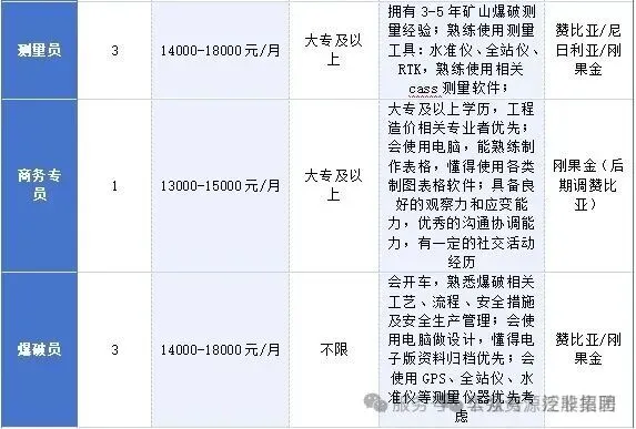 二、华强爆破矿业工程服务有限公司诚聘以下岗位