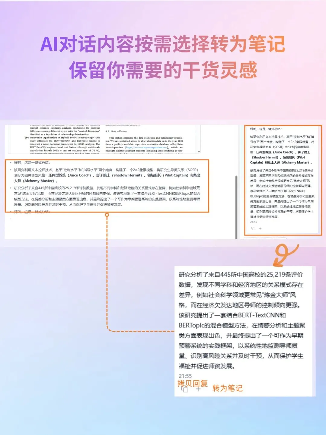 💡 自由转存笔记对话内容支持按需勾选并转为笔记,不再直接转成笔记,只精准留存你最想要的灵感和干货