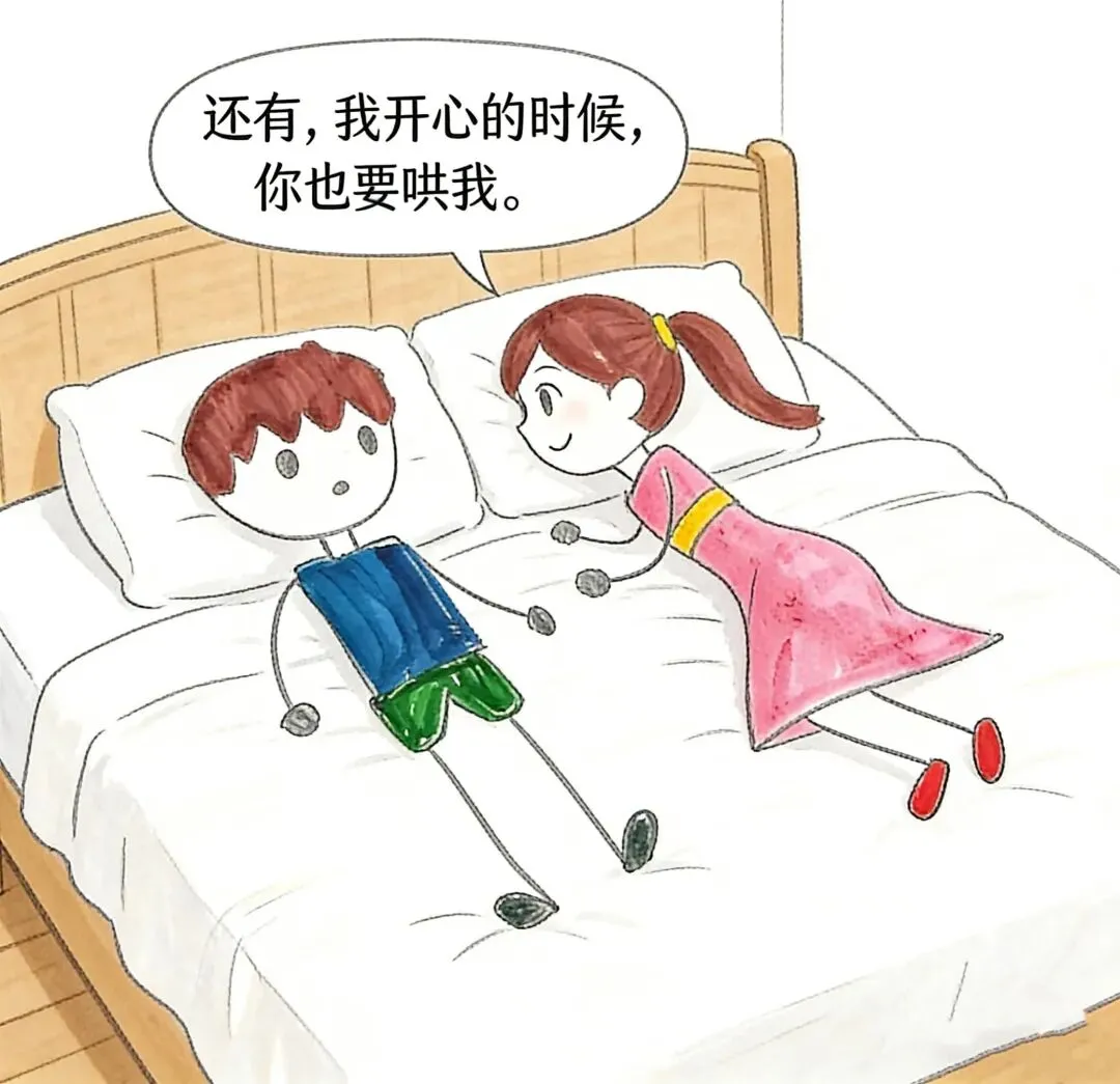 老婆:还有,我开心的时候,你也要哄我。
