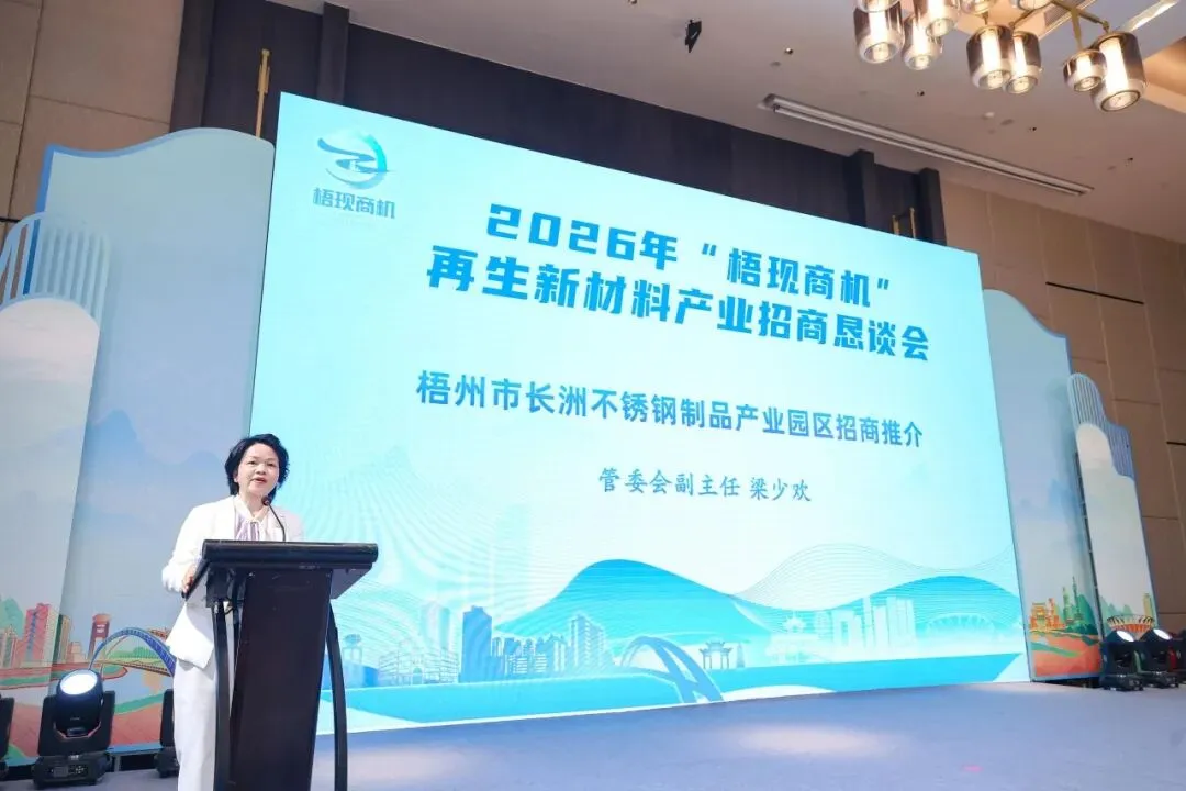 梧州市二级巡视员李旭长出席恳谈会并讲话,他表示,梧州兼具深厚人文底蕴与扎实工业基础,经济发展态势向好,与大湾区产业协作成果丰硕。再生新材料产业发展潜力巨大,产业链完善、规模可观,打造了具有全国影响力的“广西梧州样本”,2026年将出台若干措施推动产业提质升级。梧州将以产业“一类事”专区等举措,为企业提供全流程优质服务,诚邀广大企业家共享机遇、深度合作,携手并进、互利共赢。