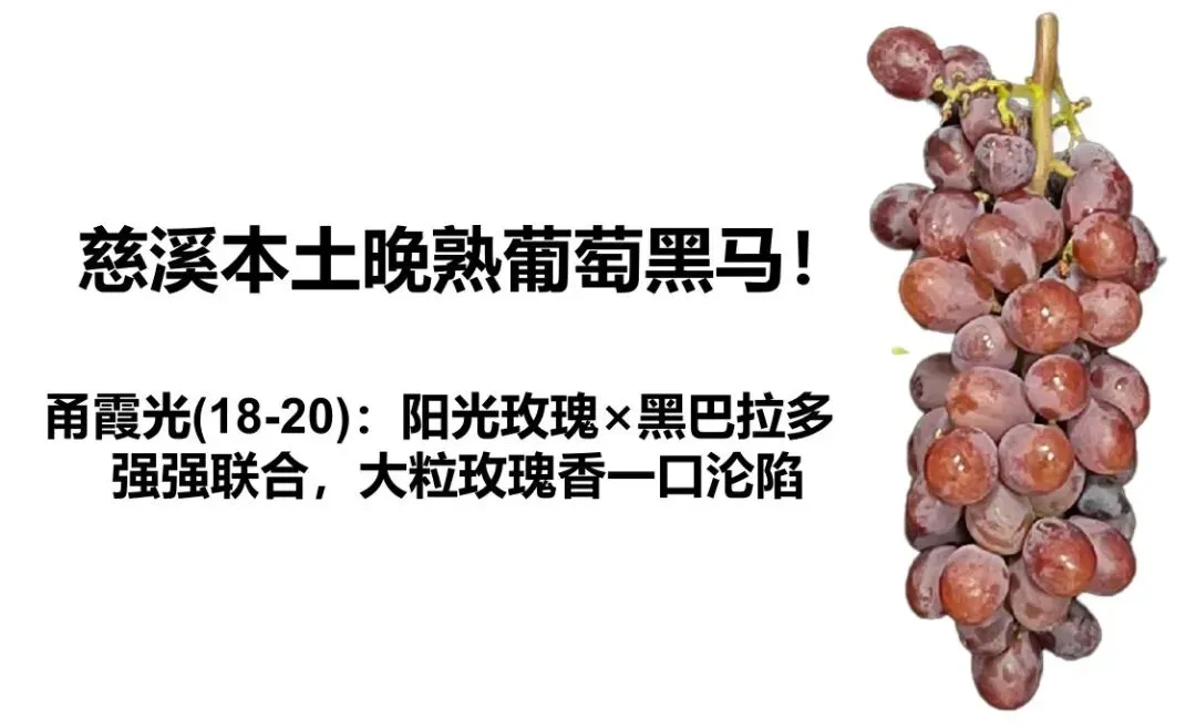 从育种选育到田间表现,从口感到商品性,甬霞光(18-20)都交出了一份满分答卷。它既是慈溪本土葡萄育种的诚意之作,也是晚熟葡萄市场里,值得被更多人看见的潜力黑马。期待未来,能在更多人的果盘里,尝到这颗带着玫瑰香气的慈溪本土好葡萄。