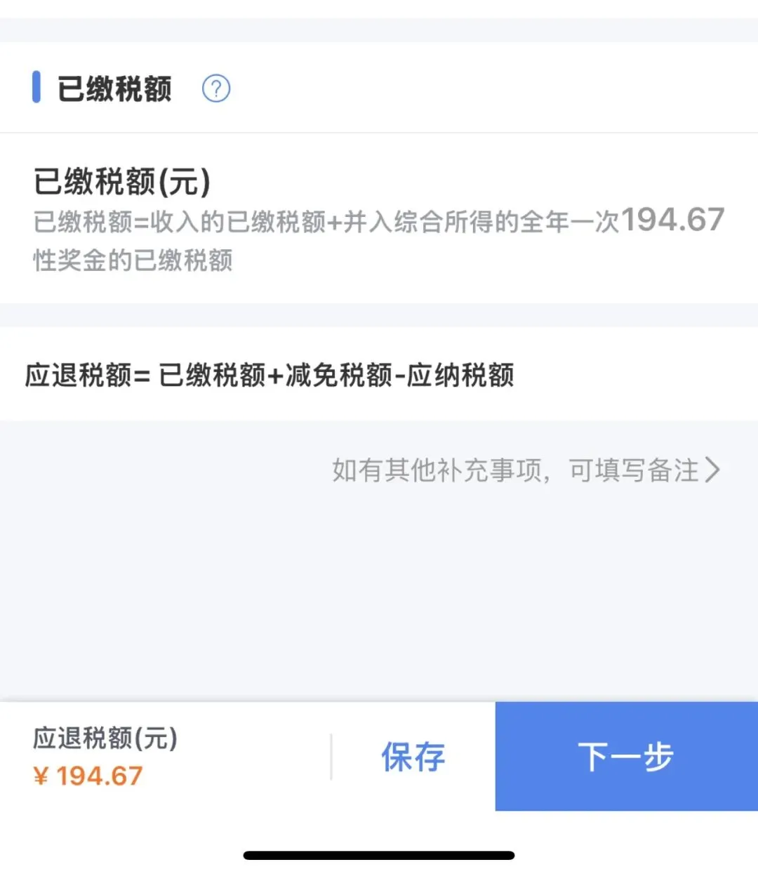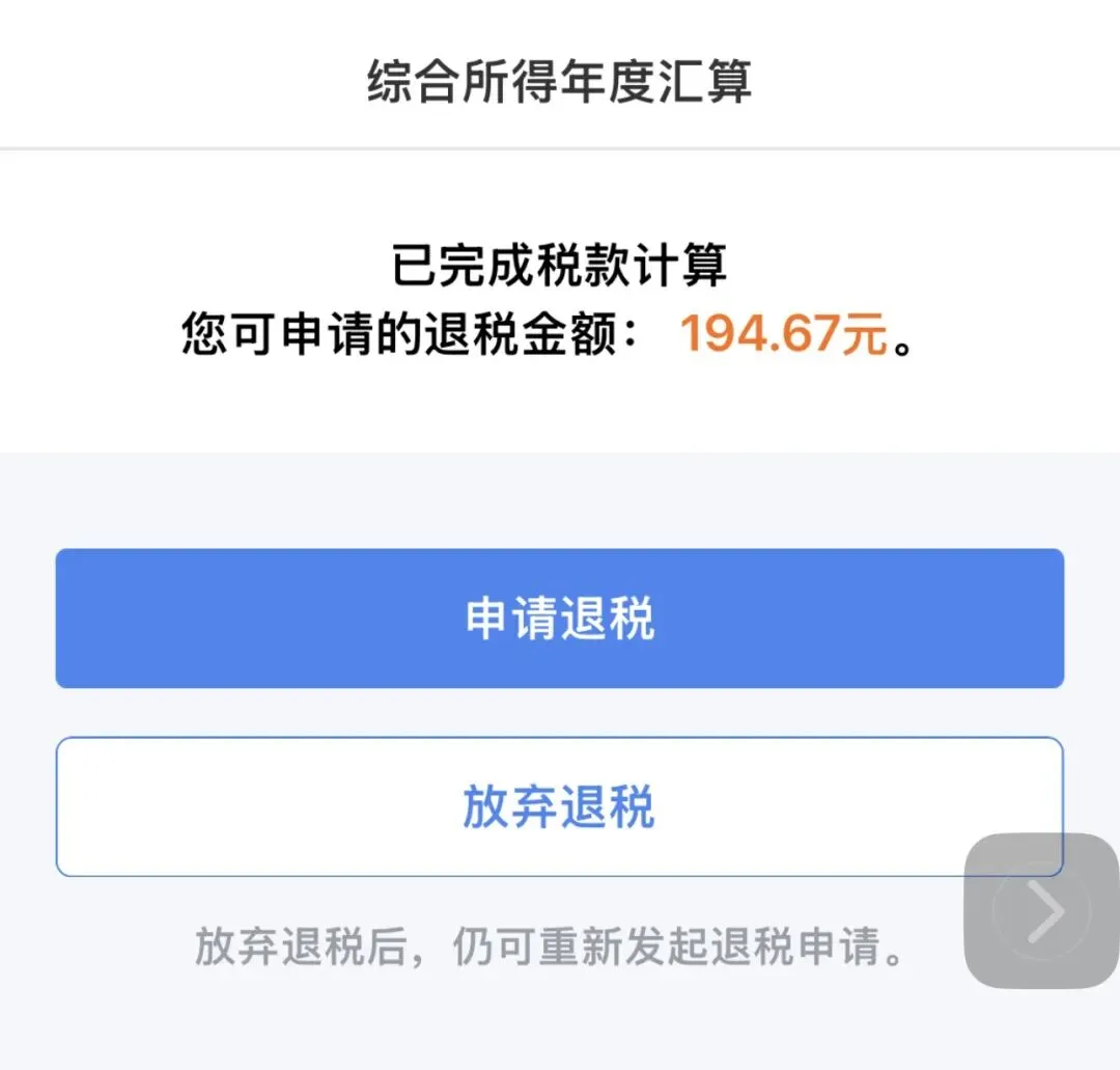 一听有钱领,我立马掏出手机,打开个人所得税APP跟着流程一步步操作,生怕晚一步就错过了。没想到步骤超简单,而且还可以退194元呢!这纯粹相当于就是白白捡到的呢!