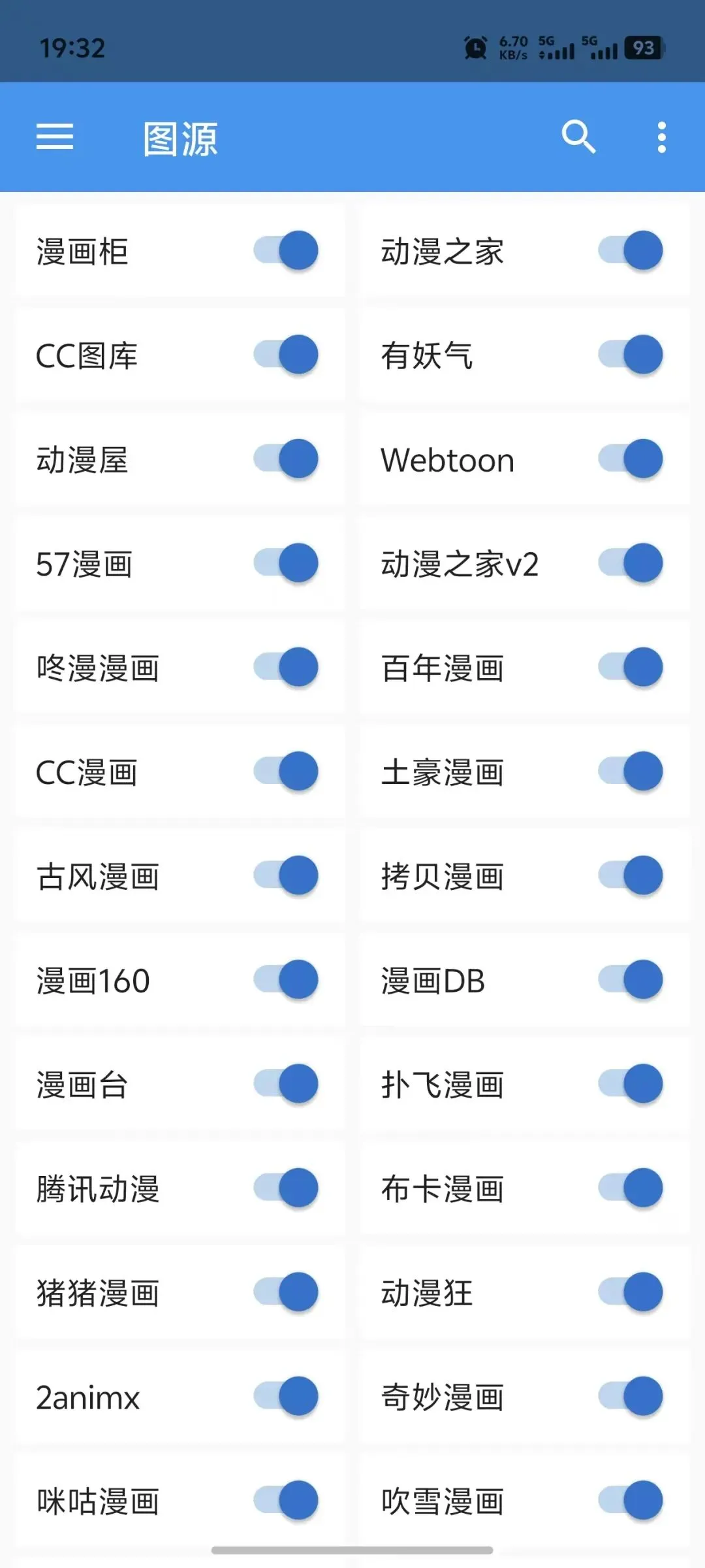 ✅ 资源聚合,一网打尽:它本身不内置漫画内容,但支持导入自定义图源,能聚合全网漫画资源——国漫、日漫、韩漫、欧美漫画,还有冷门小众漫画,甚至是最新连载的热门作品,都能轻松找到,相当于一个“漫画资源中转站”。