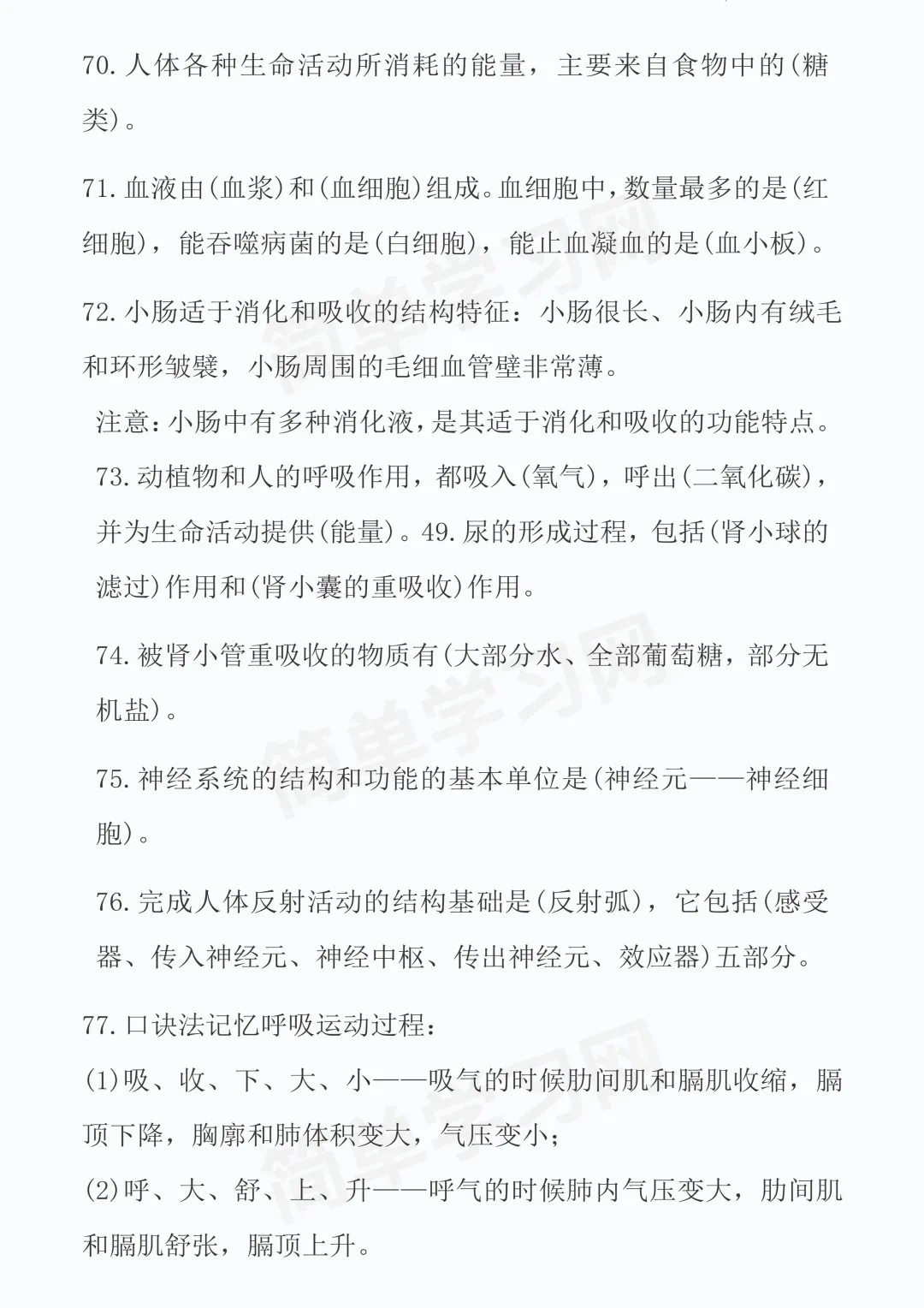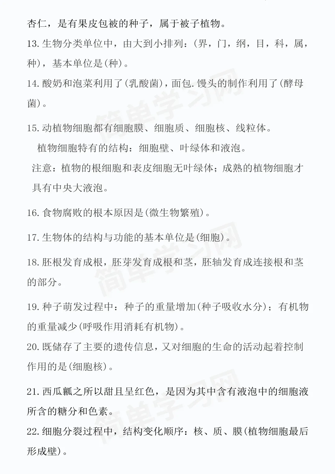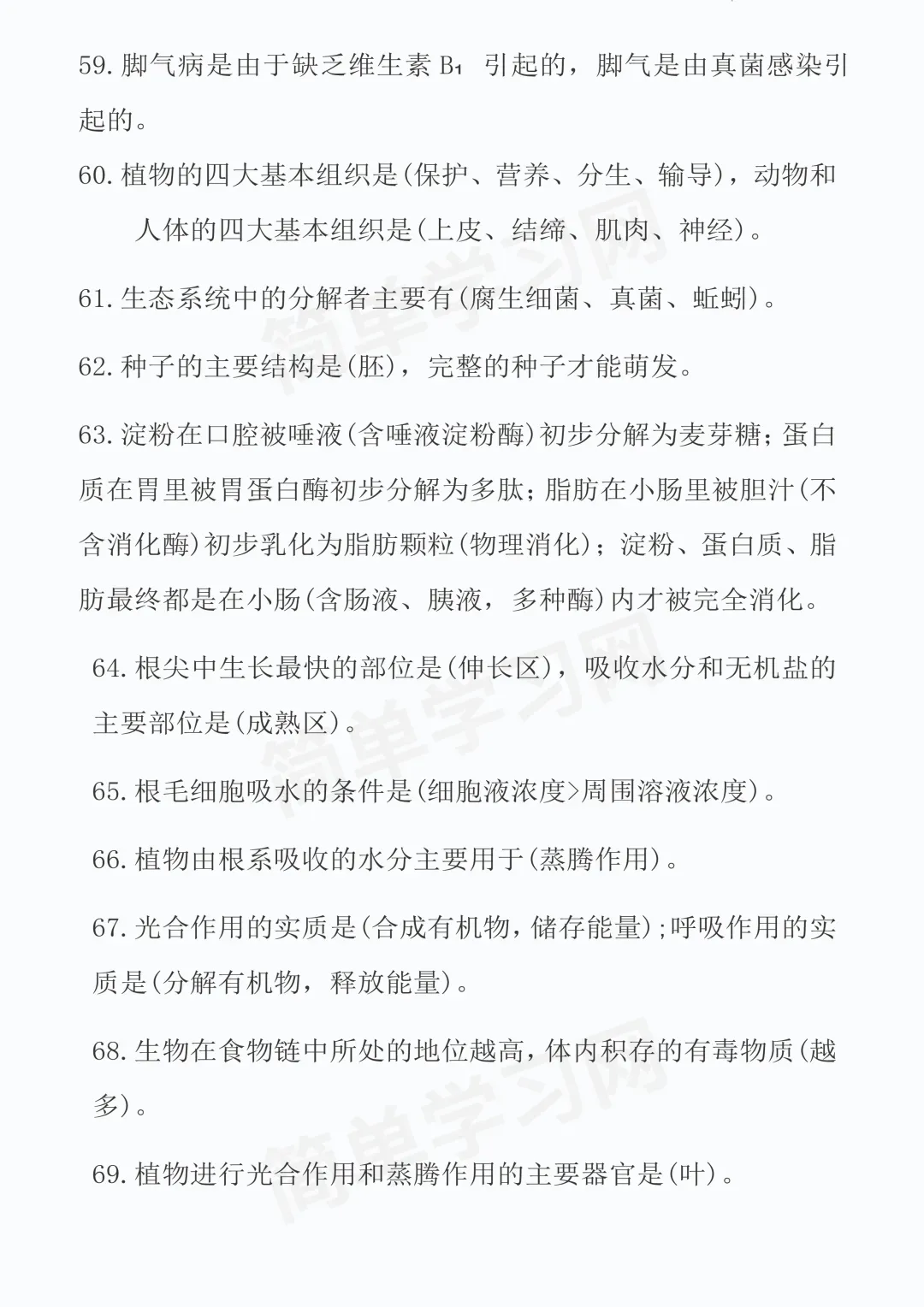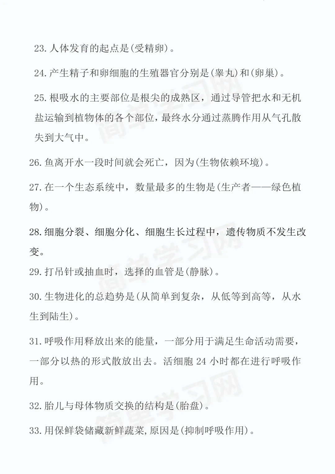 可打印!2026初中生物会考必背!100个易错点知识点总结!